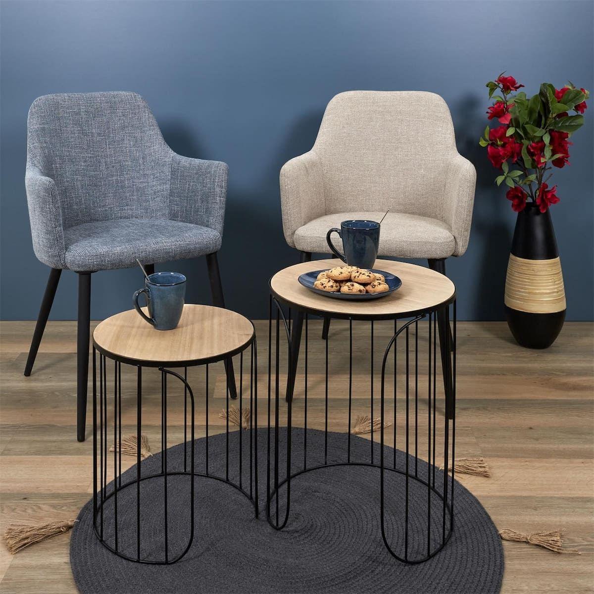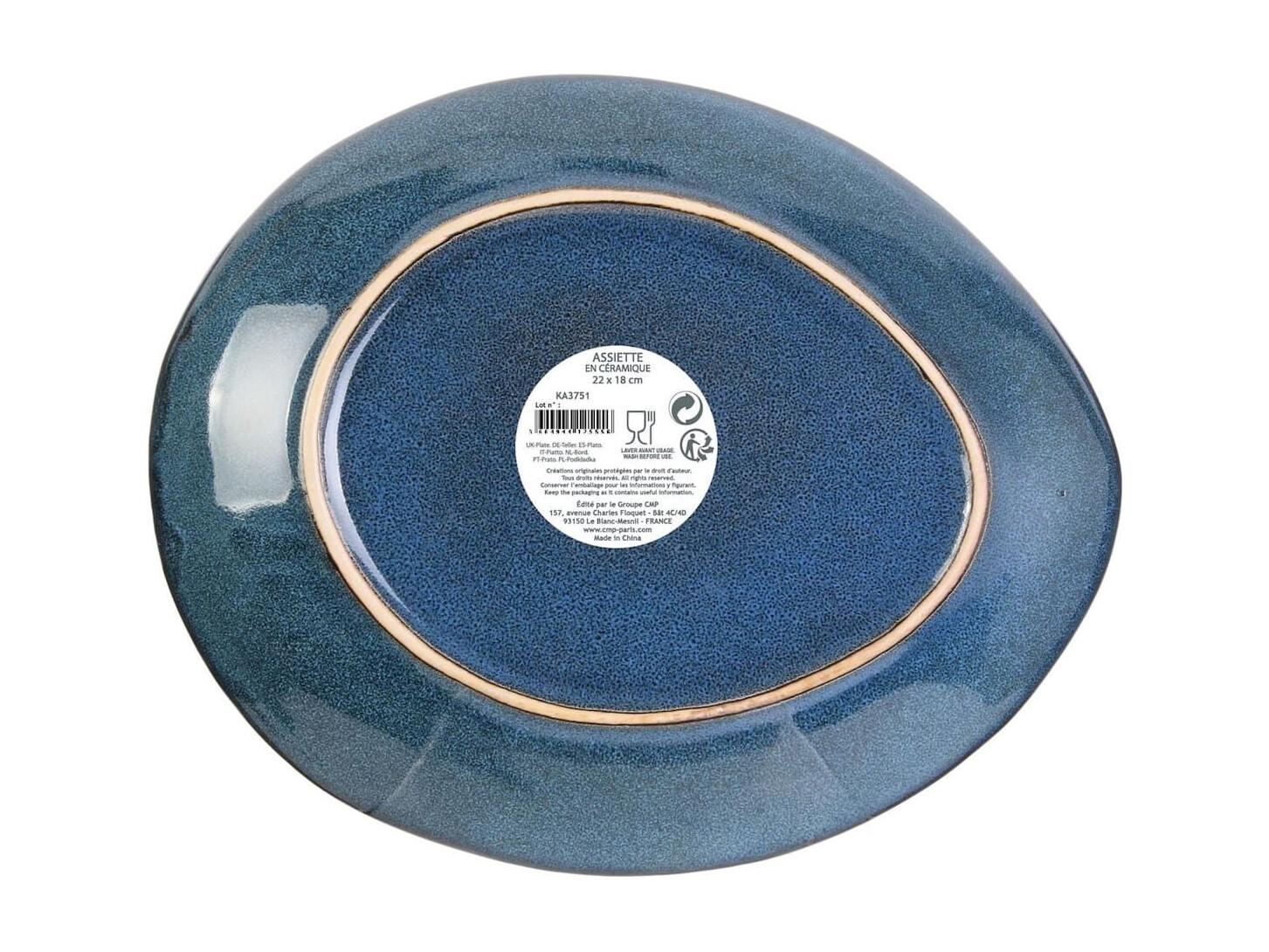 Set de 6 assiettes à dessert galet en céramique au grés du temps bleu (22x18cm) - GALET