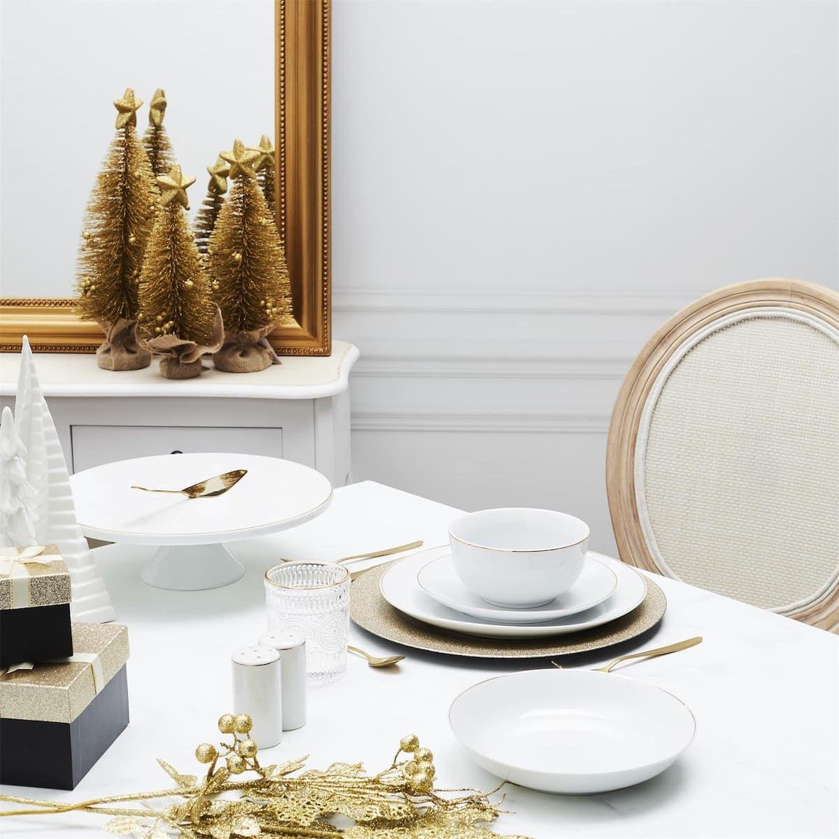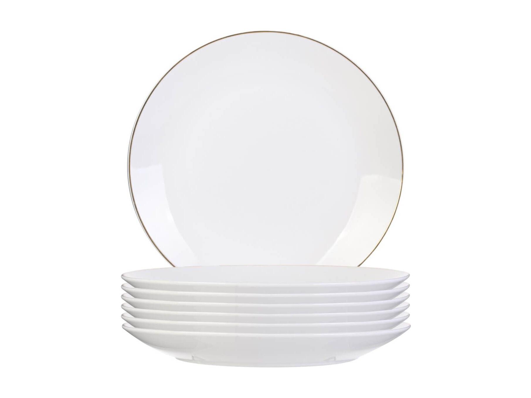 Set de 6 assiettes plates blanches en porcelaine avec liseré doré (Ø26,5 cm) - AURA