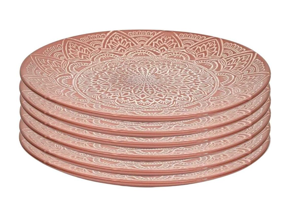 Set de 6 assiettes plates en céramique terracotta motif mandala (Ø27 cm) - AKKA
