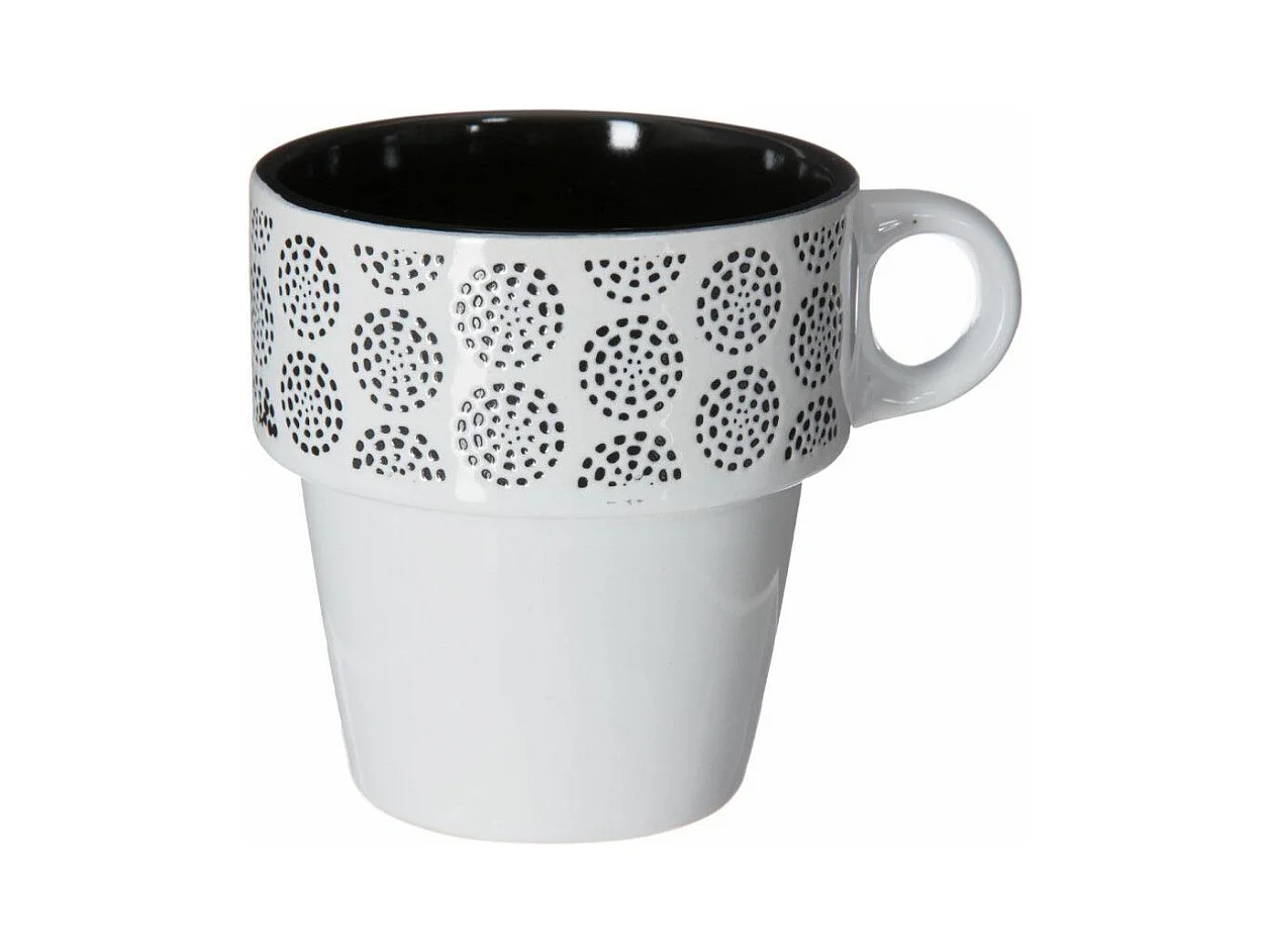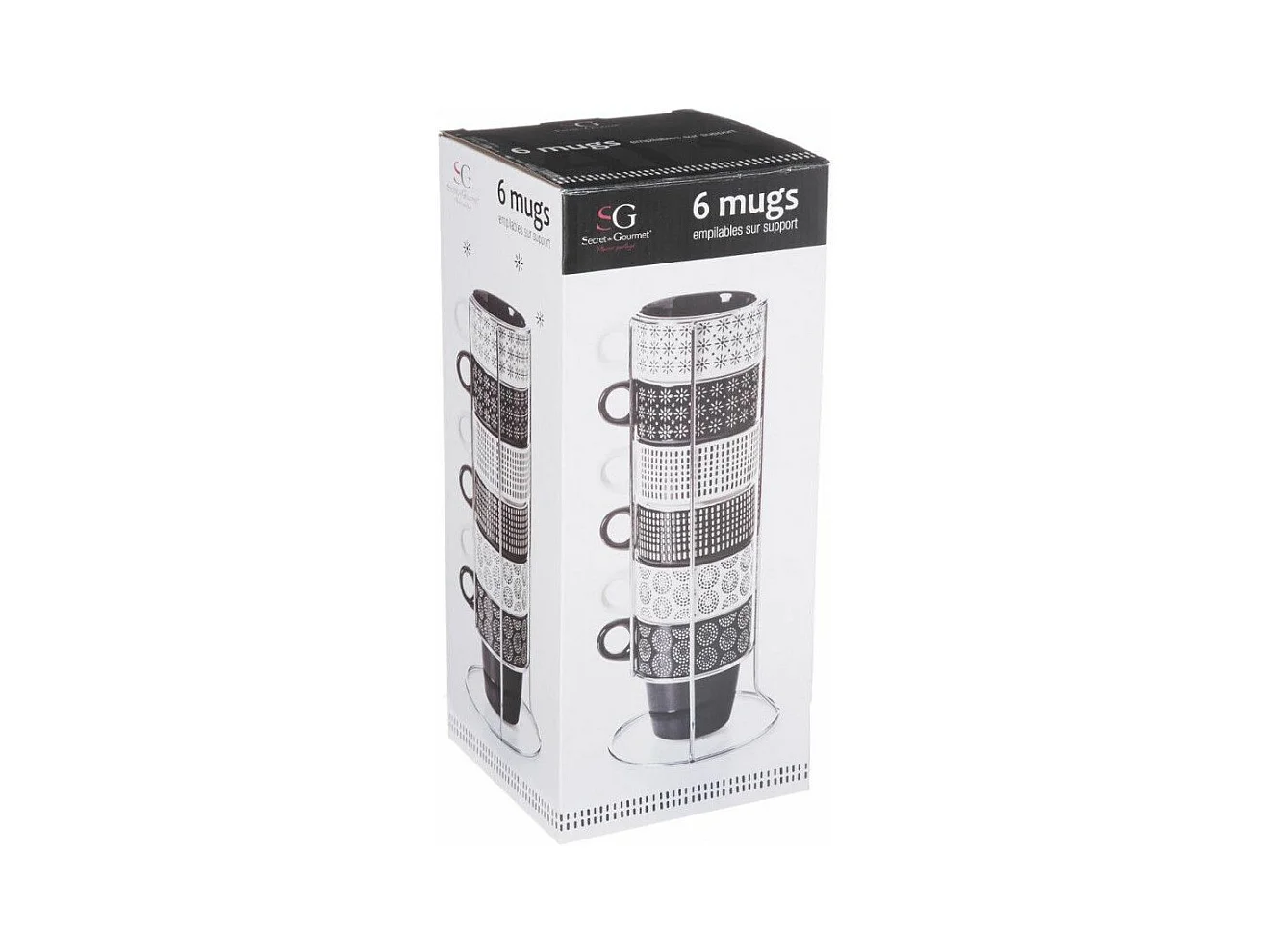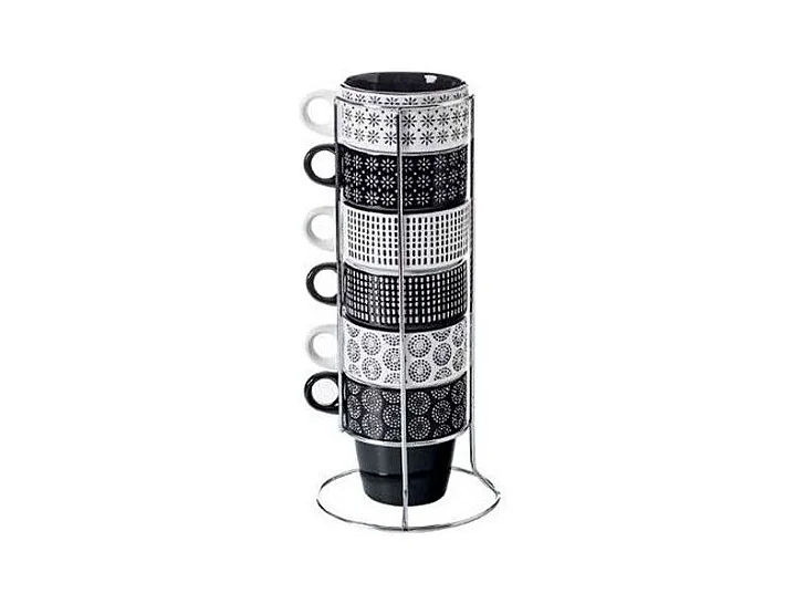 Lot de 6 Mugs sur Rack "Ethnik" 26cl Noir & Blanc
