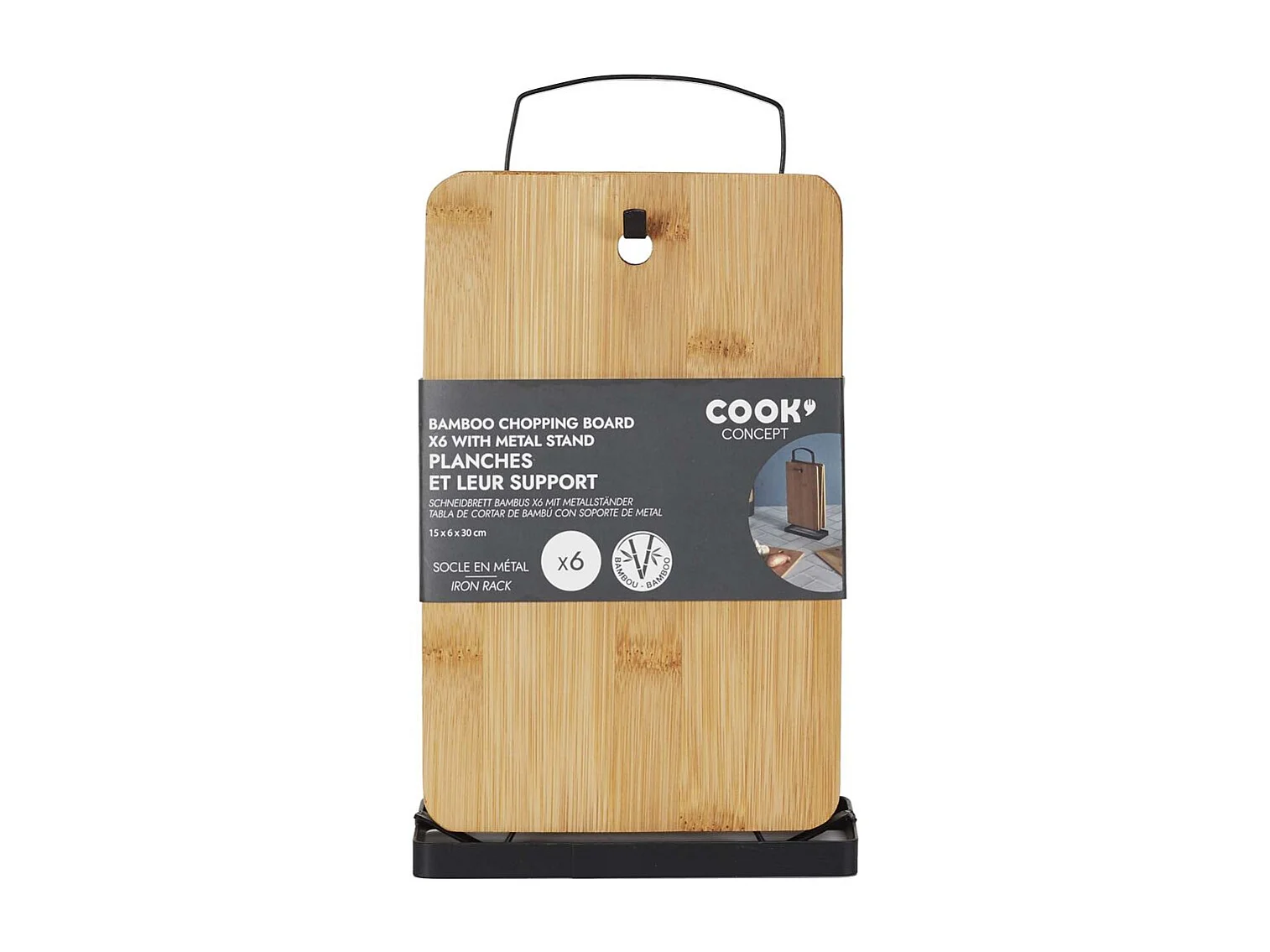 Planche A Decouper Bambou X6 Avec Socle Metal Marron, Noir