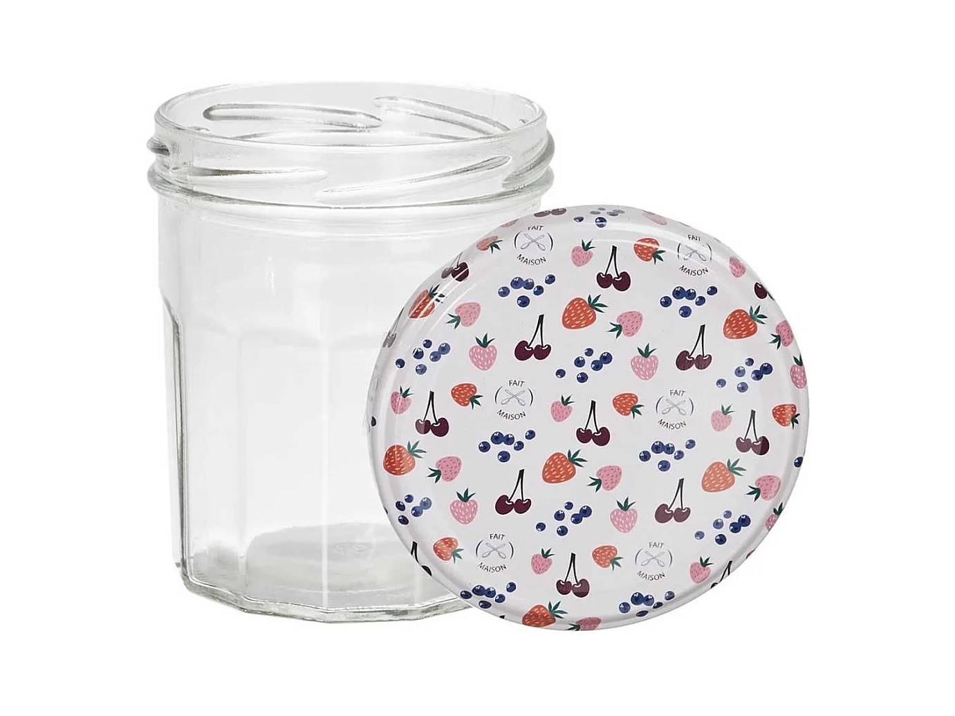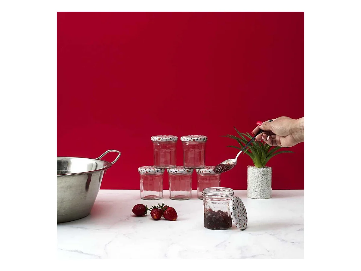 Set de 6 pots à confiture en verre 30cl avec couvercles en métal imprimé