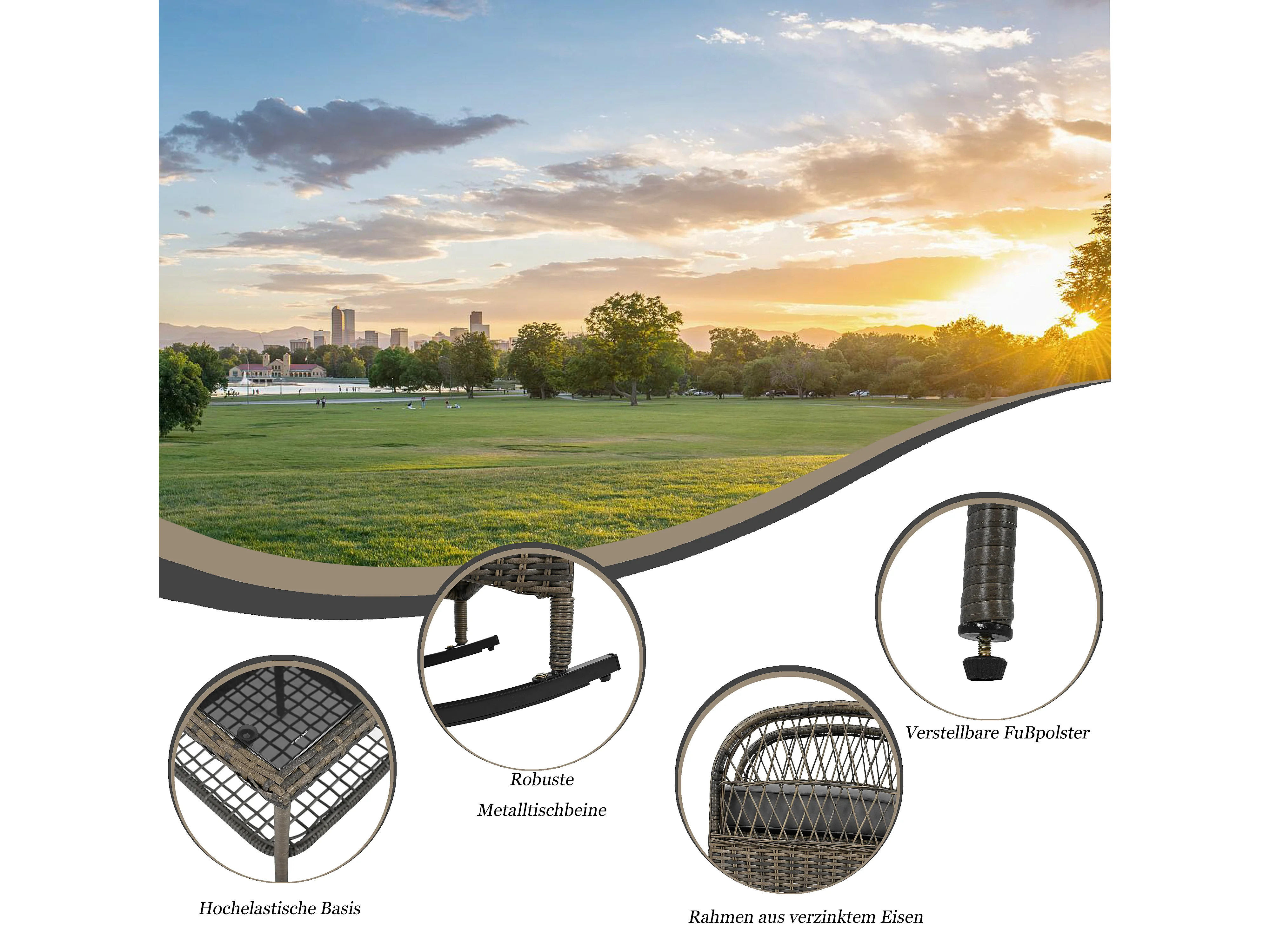 Set de balcon en rattan (3 pièces), coussins gris, capacité 160 kg (dimensions non spécifiées)