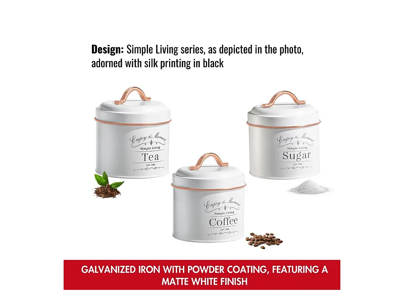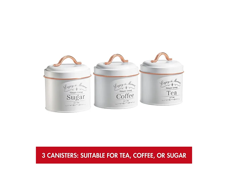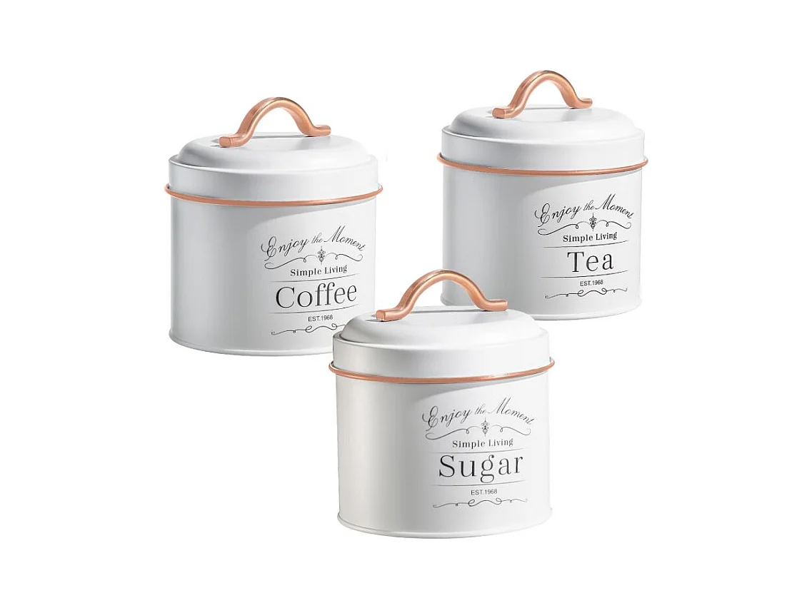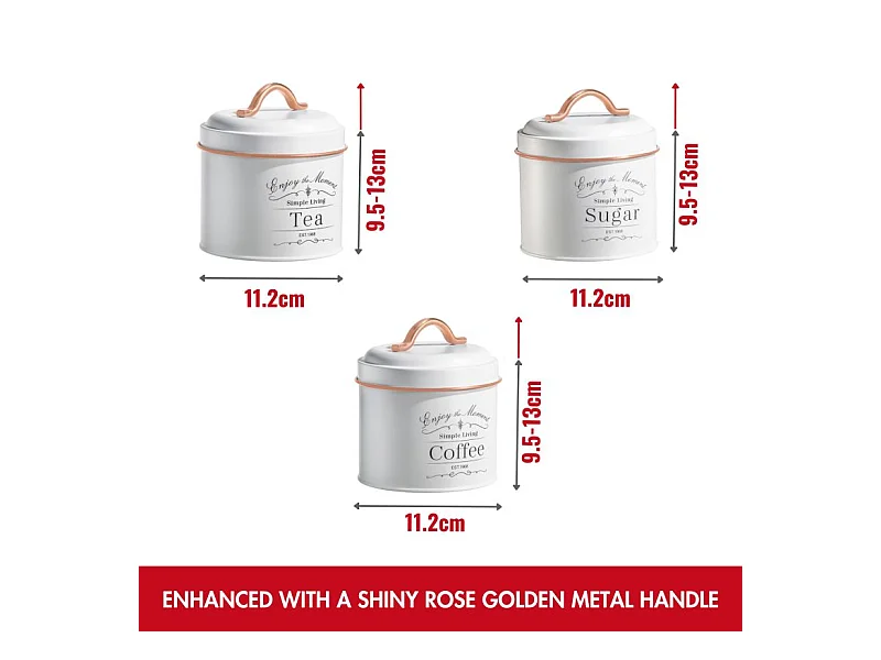 Set de boîtes de conserve vintage 3 pièces Blanc bordure Or Rose Herzberg HG04432