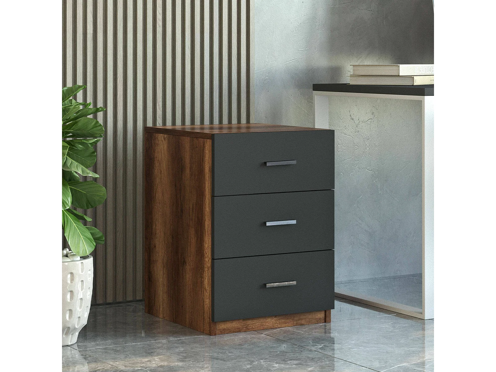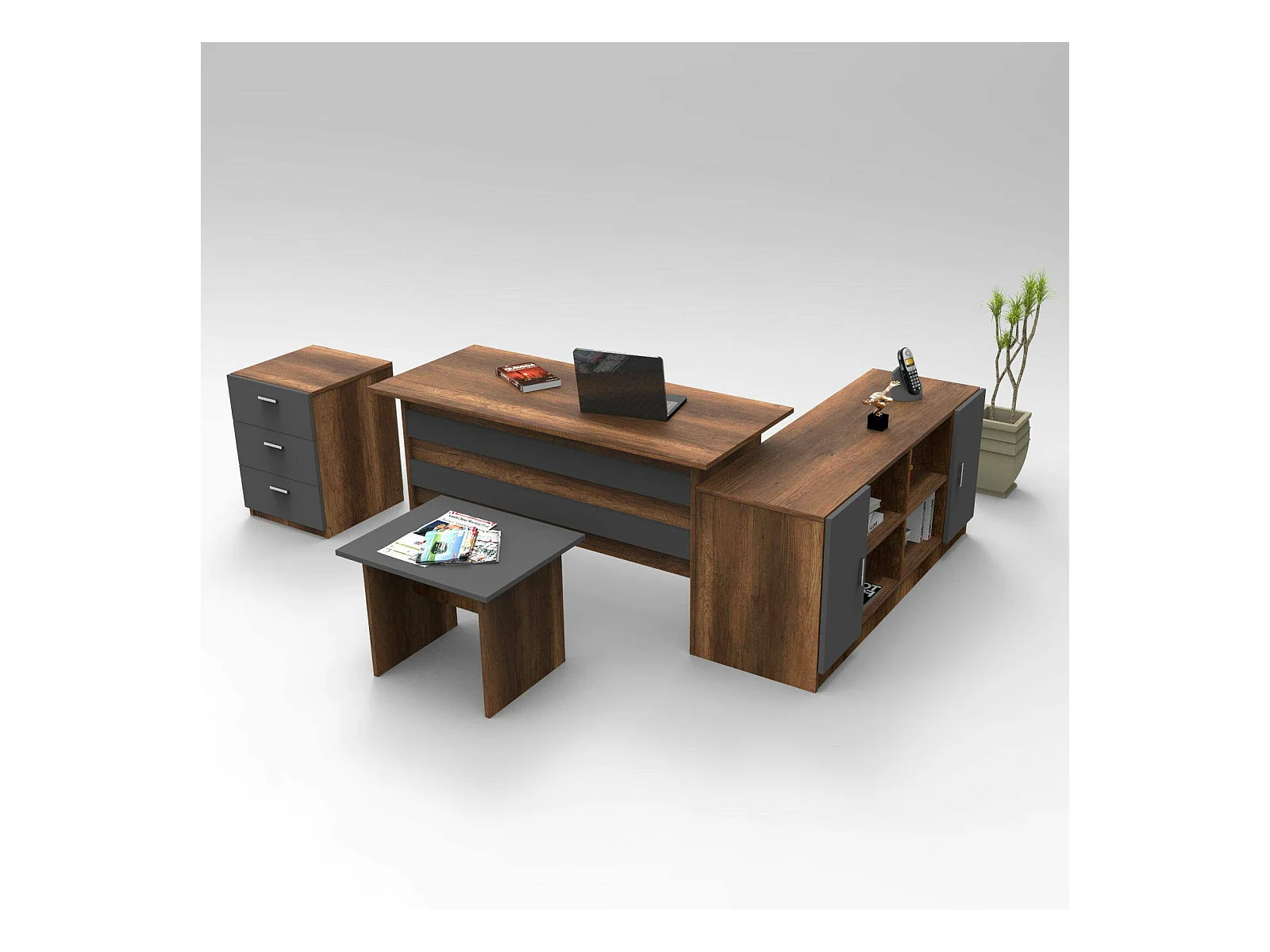 Set de bureau Dgiovannin, Composition du studio, Kit de bureau, Ensemble de bureau et de tiroirs, Noyer et Anthracite