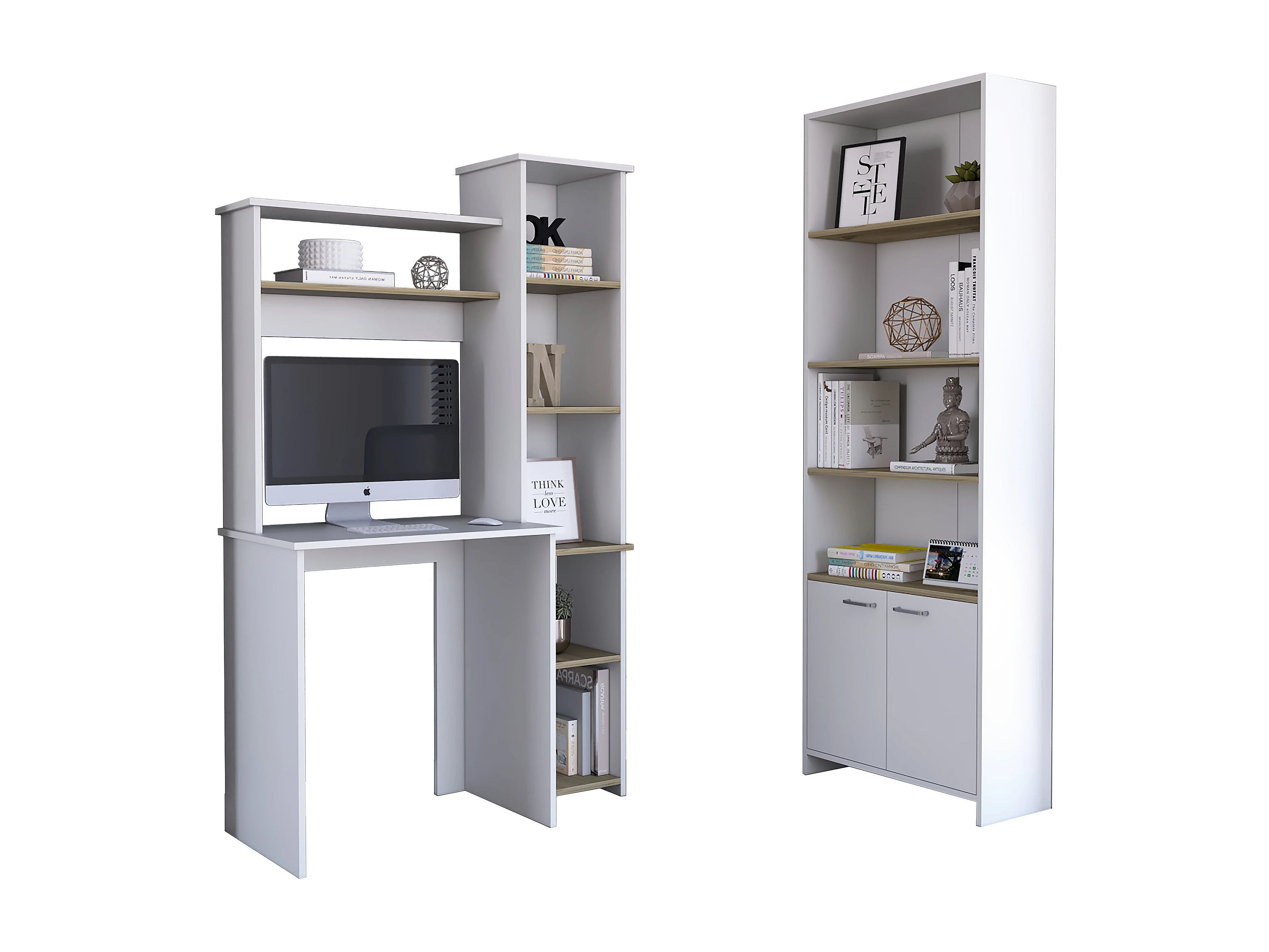 Set de bureau, Heinrich Computer Center + Z63 Bibliothèque des étagères avec 2 portes, 163.1 / 180,6 à CM x 98,5/63 A CM x 45,3 / 26 P cm, dune / blanc