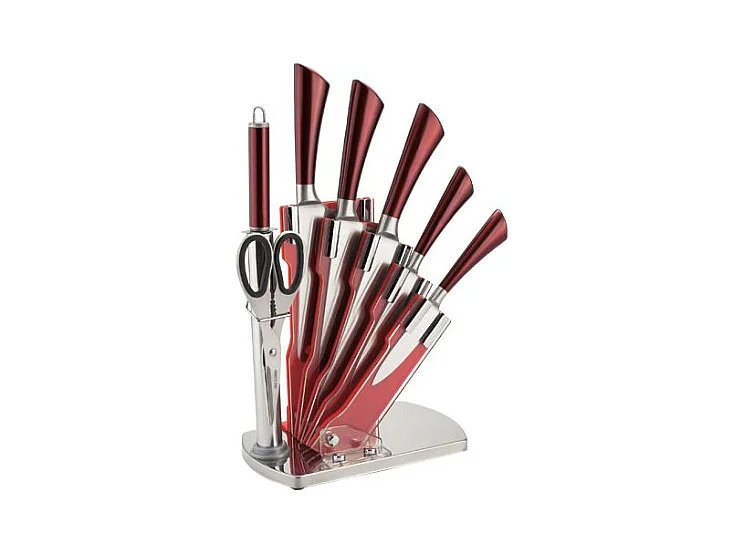 Set De Couteaux Avec Support 8 Pieces Royaltyline RLKSS804-RED