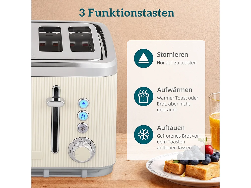Set de grille-pain et bouilloire de 1,7 L 2200W filtre anticalcaire 4 tranches avec 7 niveaux de brunissage crème blanc
