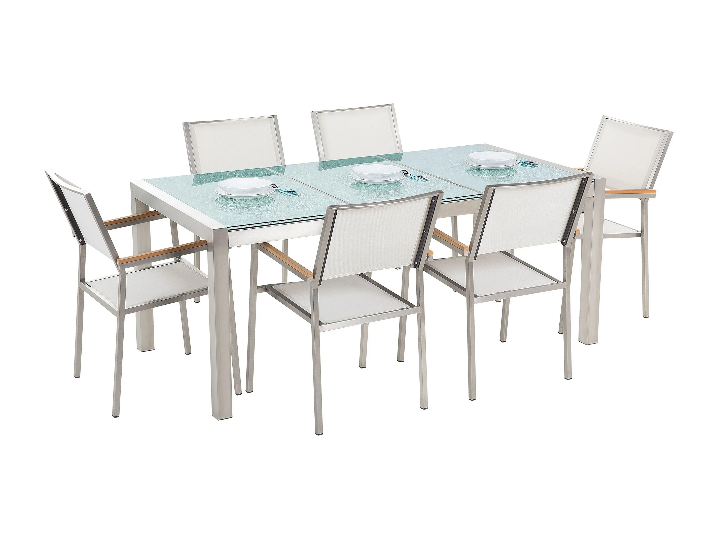 Salle à manger de jardin 6 places GROSSETO Triple plaque Verre fissuré Transparent/blanc