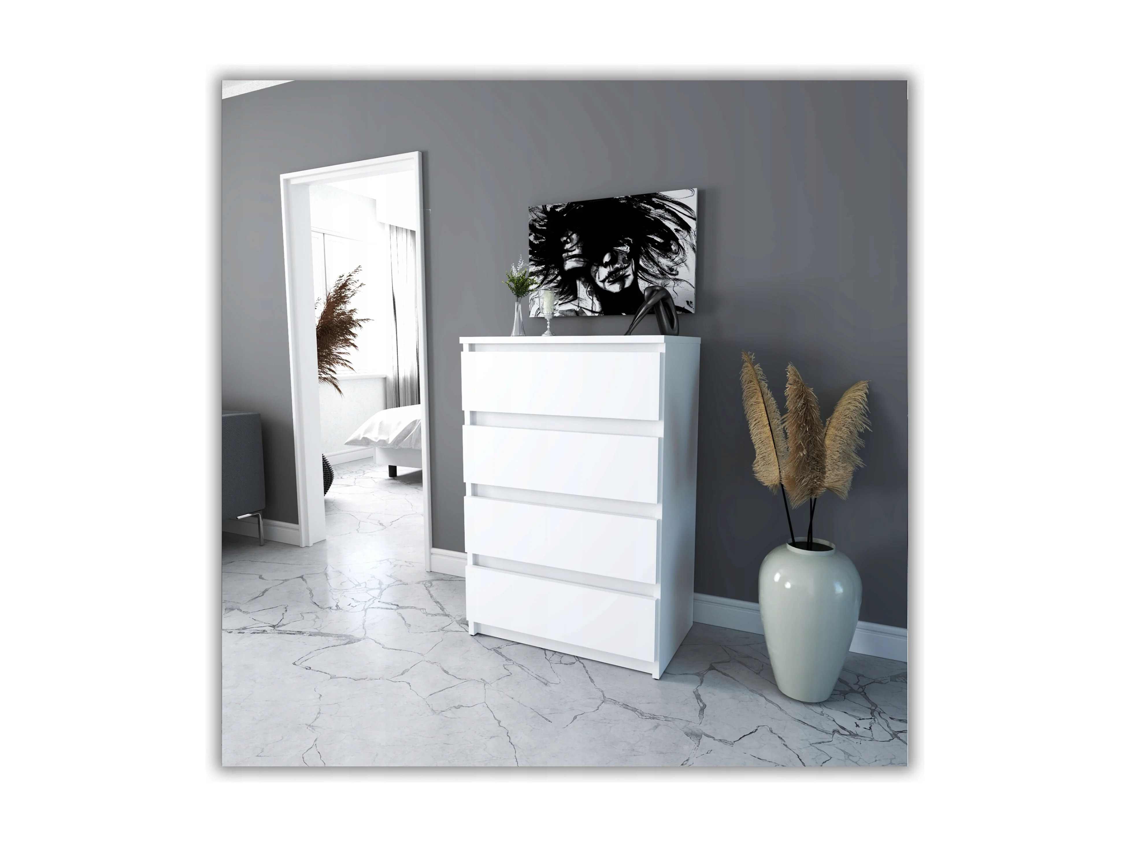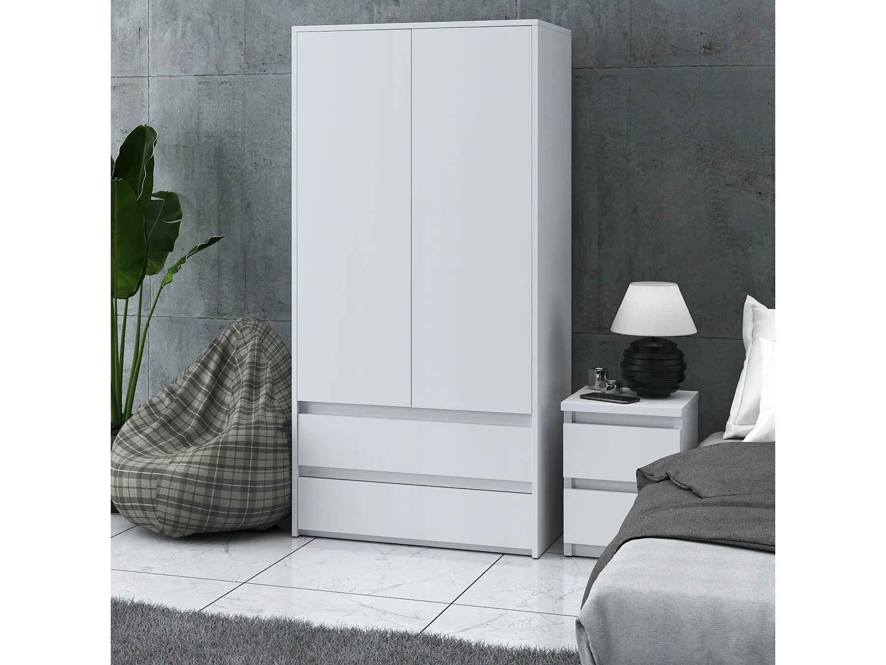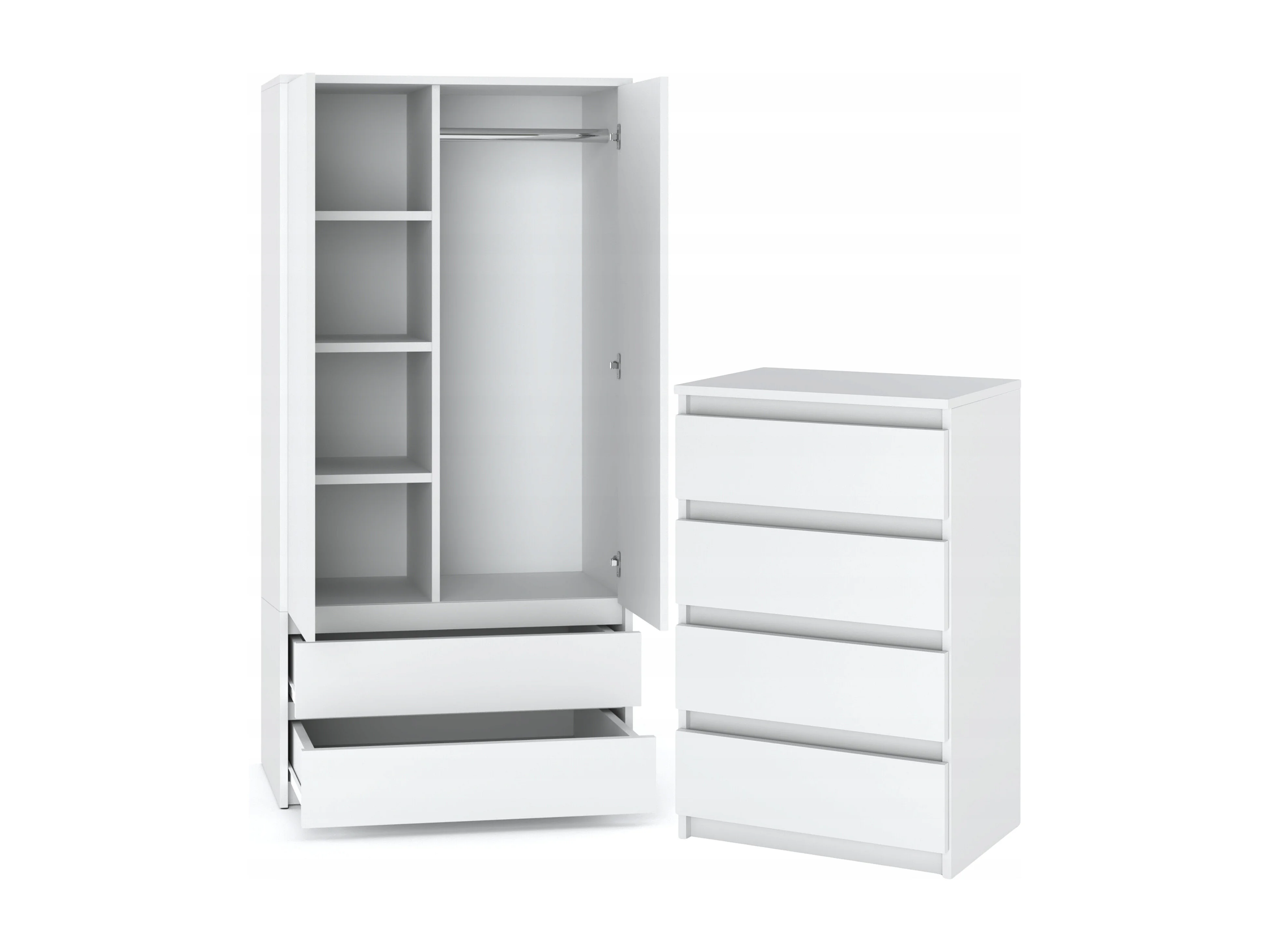 Set de Meuble de Rangement – Armoire 90 cm + Commode 4 Tiroirs 60cm – Blanc – Moderne et Pratique
