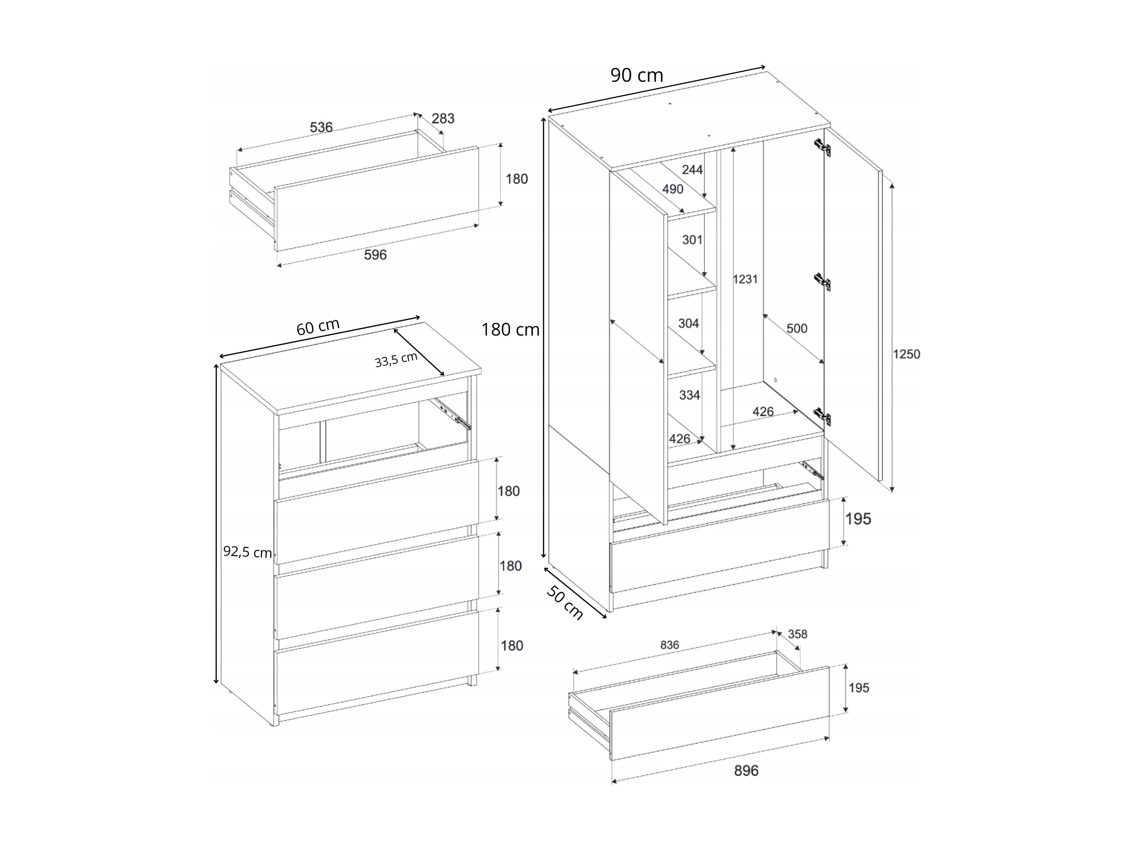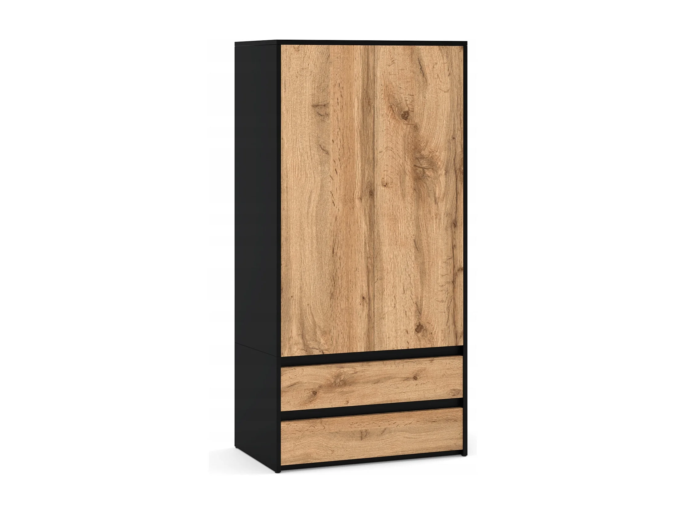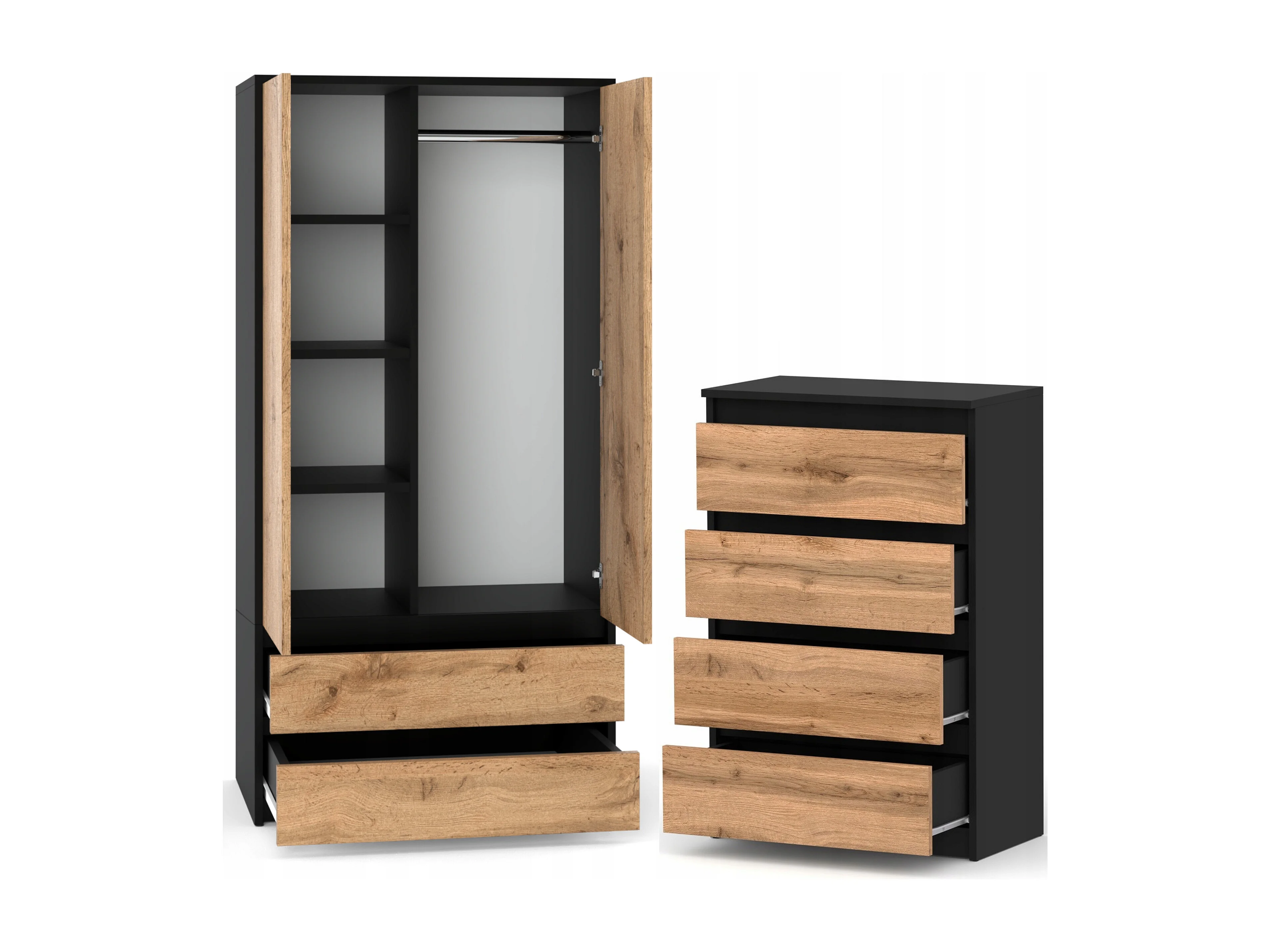 Set de Meuble de Rangement – Armoire 90 cm + Commode 4 Tiroirs 60cm – Noir + Chêne Wotan– Moderne et Pratique