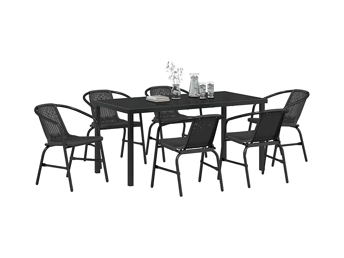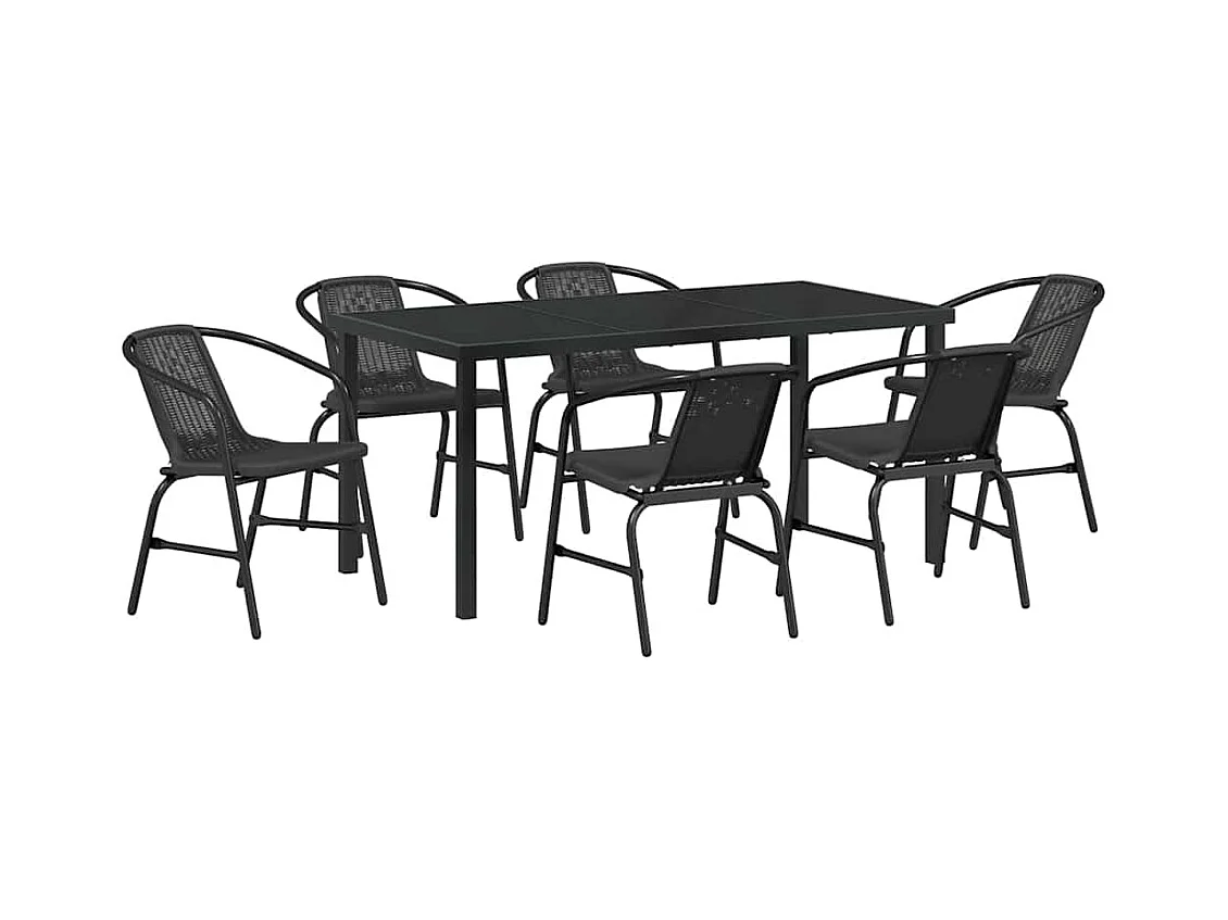 Set de salle à manger de jardin 7 pièces en rotin poly noir