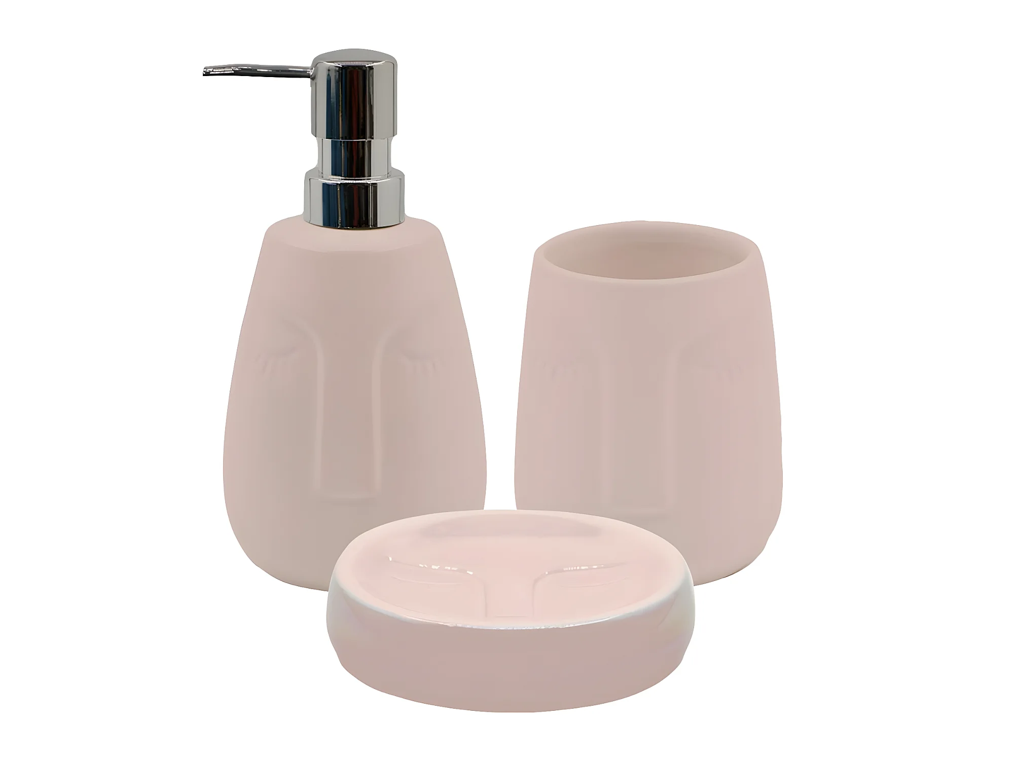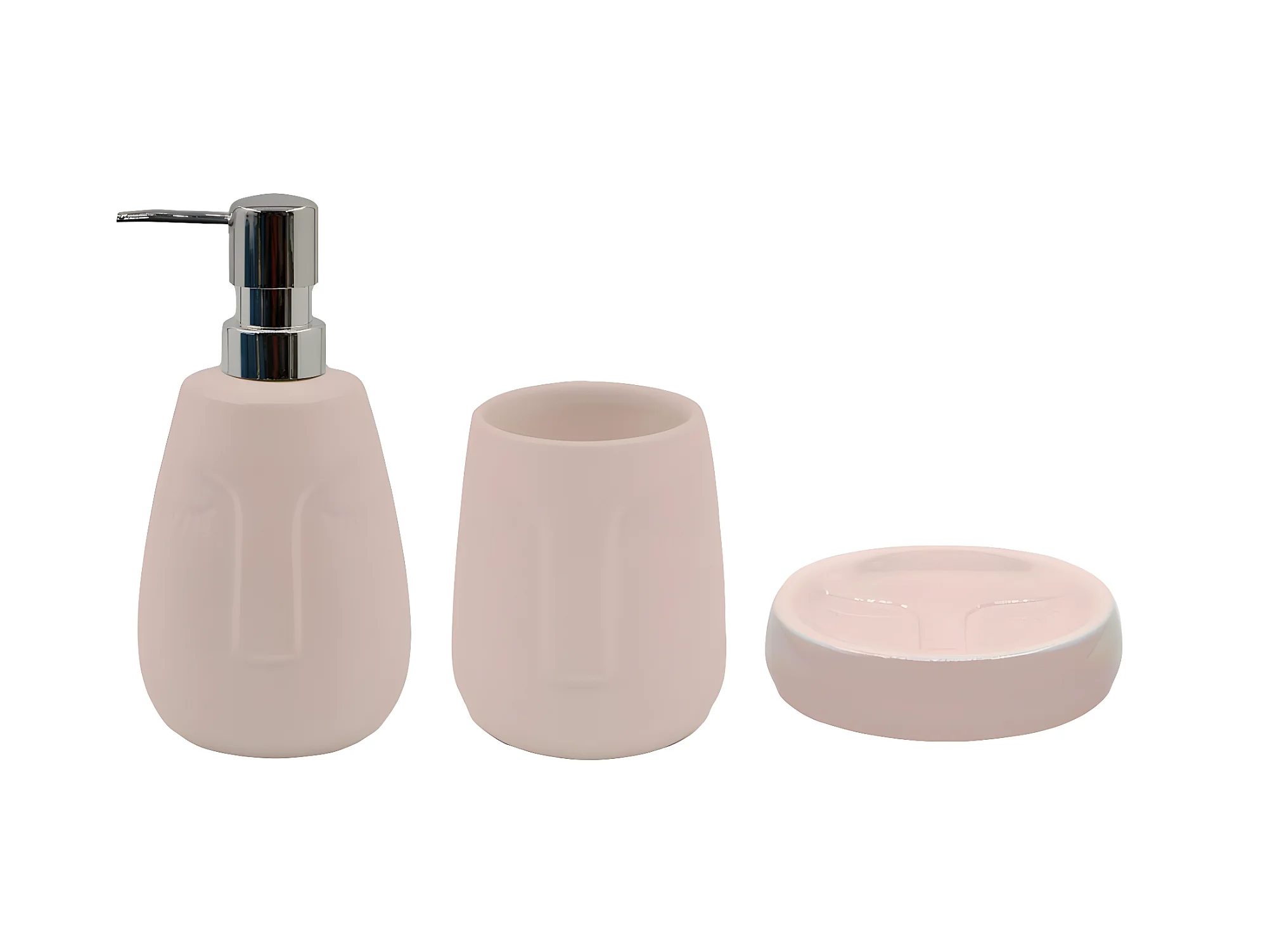 Set salle de bain à relief 3 pièces céramique rose poudré