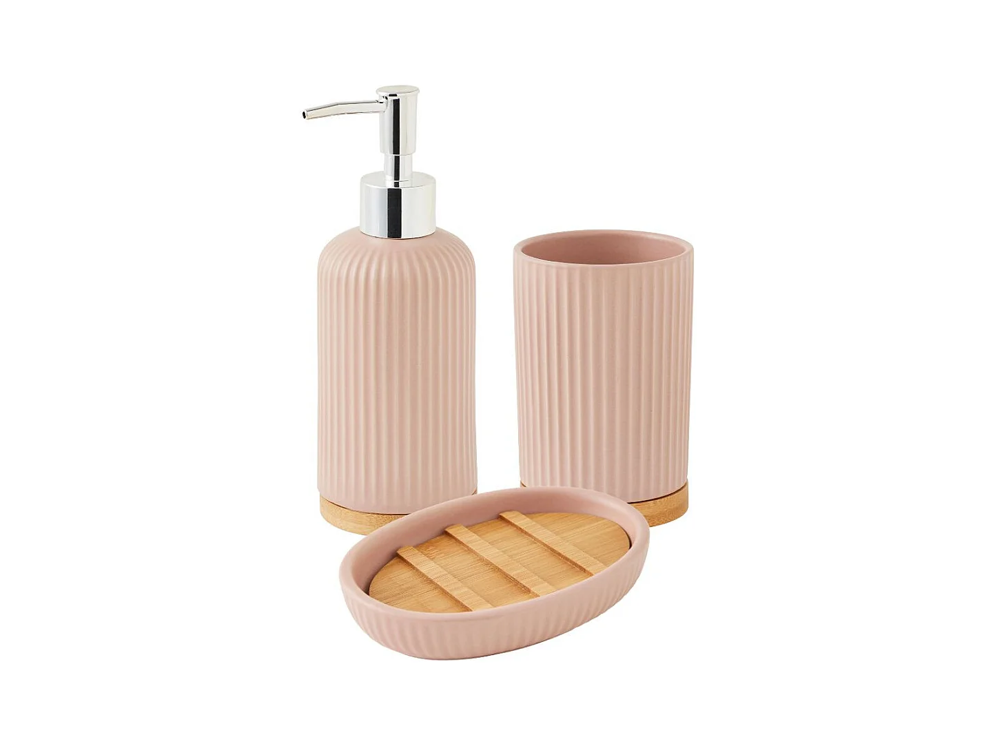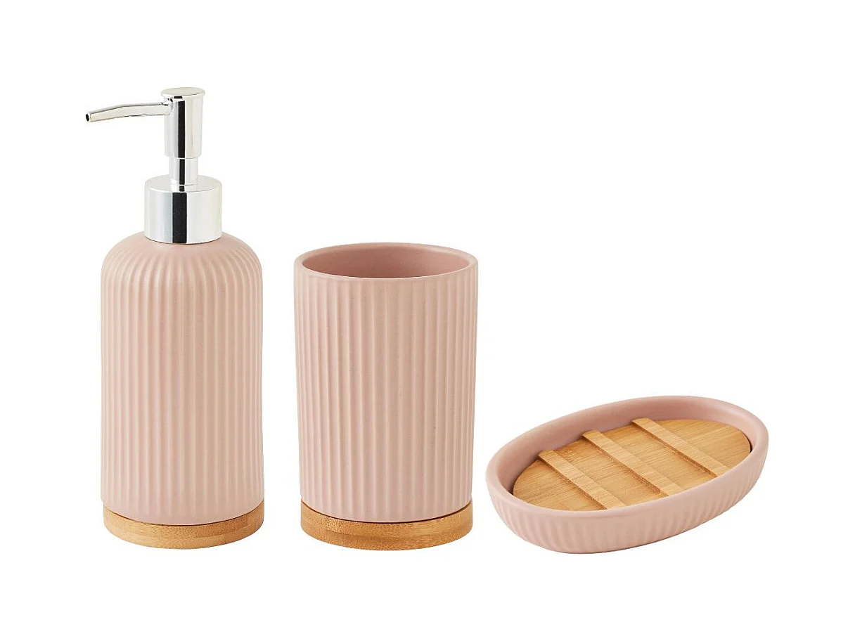 Set salle de bain à relief 3 pièces céramique rose poudré