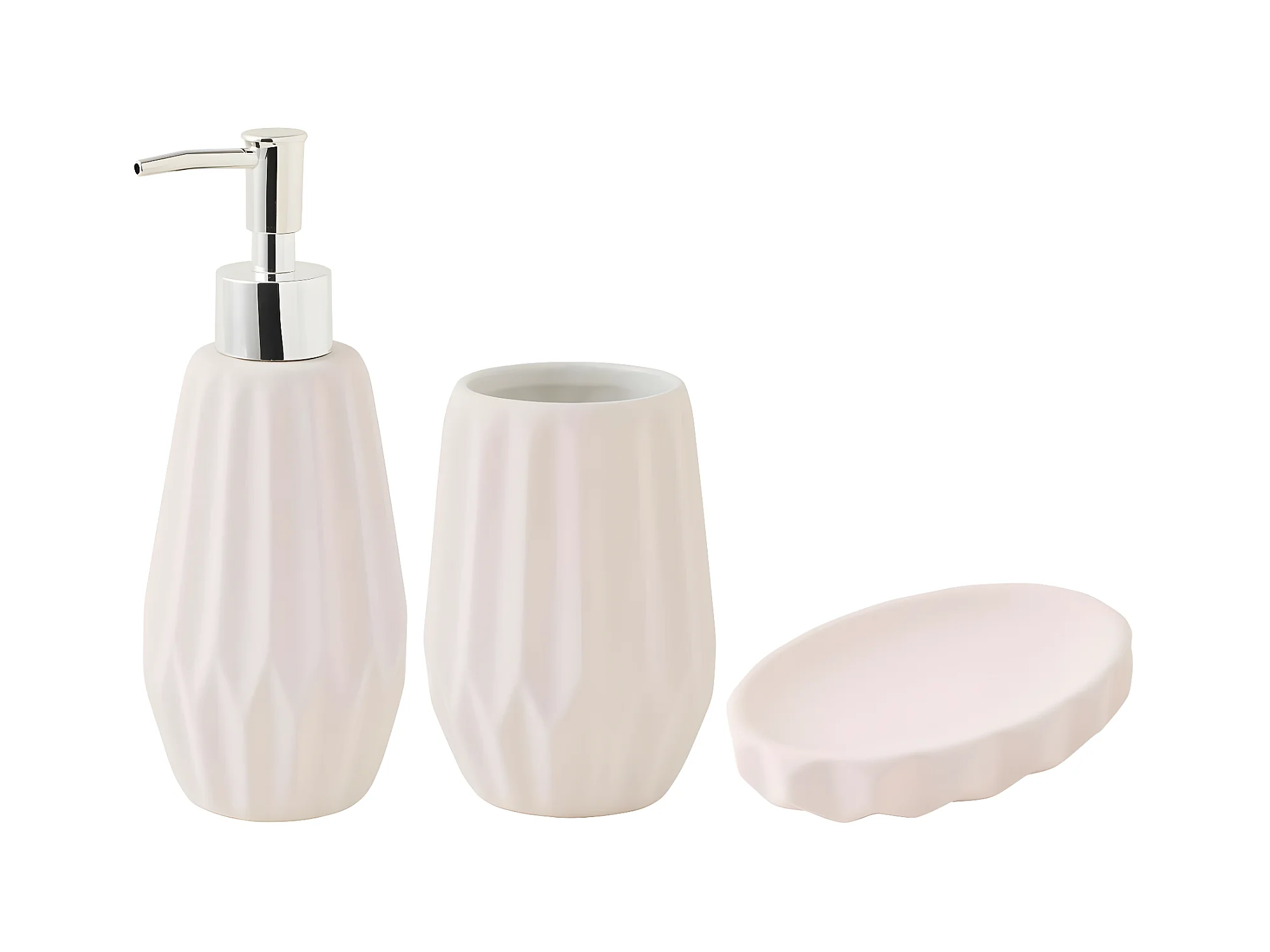 Set salle de bain à relief 3 pièces céramique rose poudré