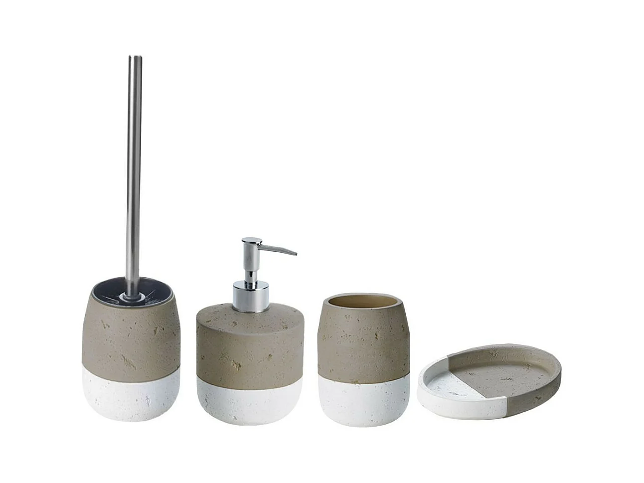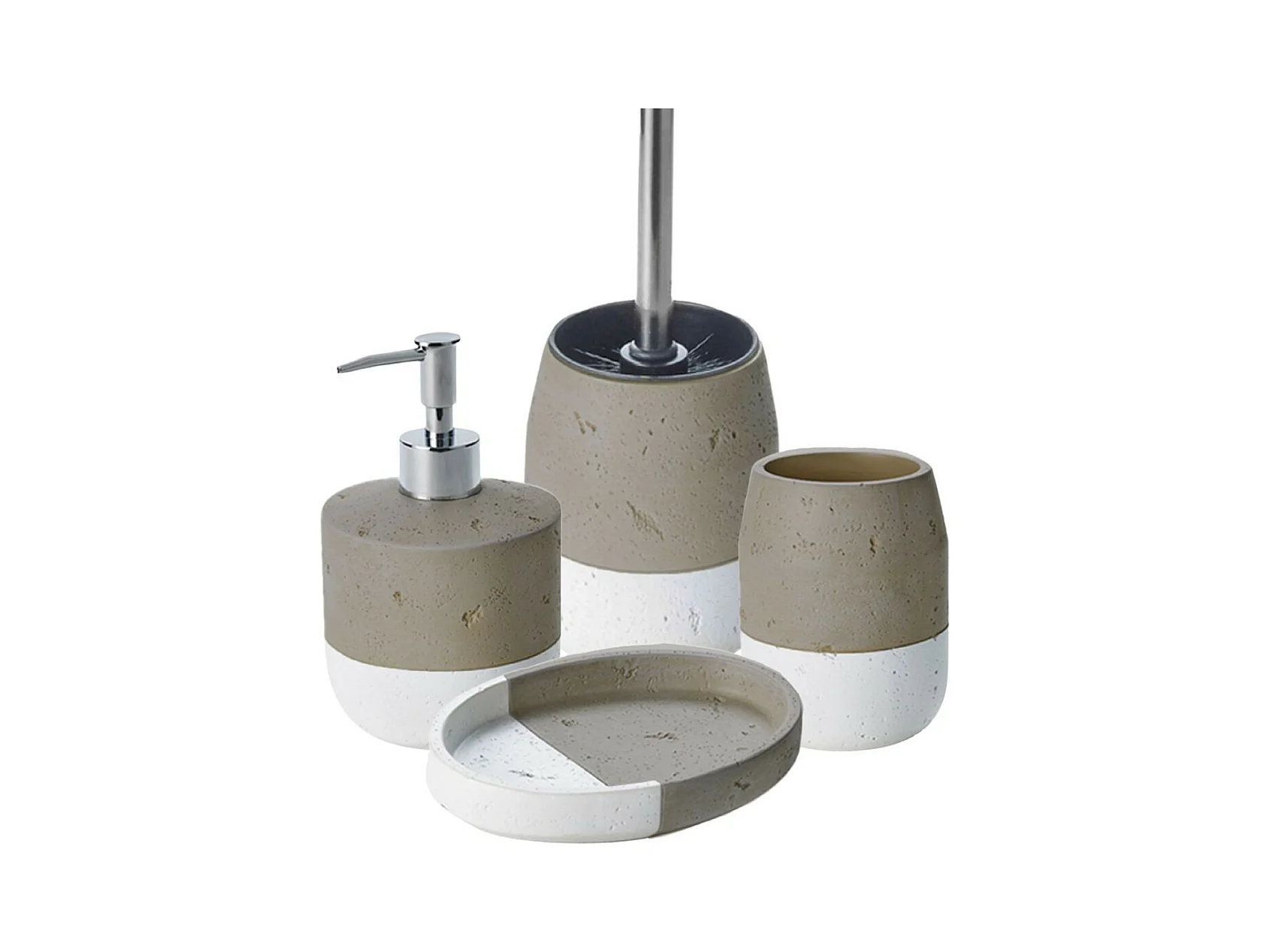 Set salle de bain bicolore 4 pièces en céramique taupe