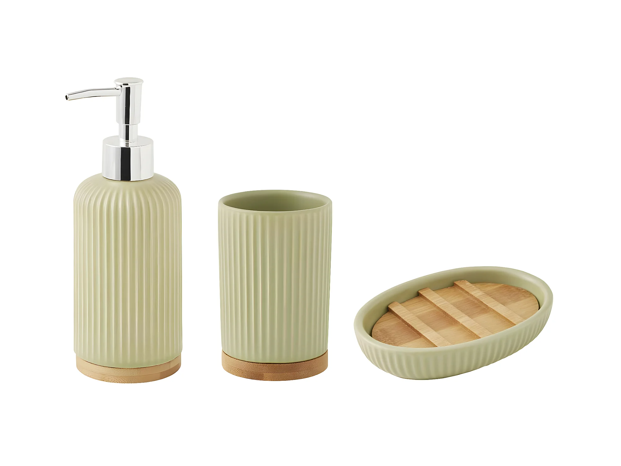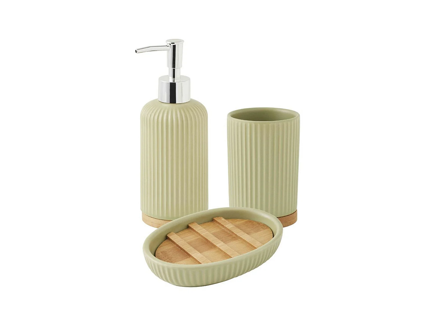 Set de 3 Accessoires Salle de Bain "Vita" 19cm Sauge