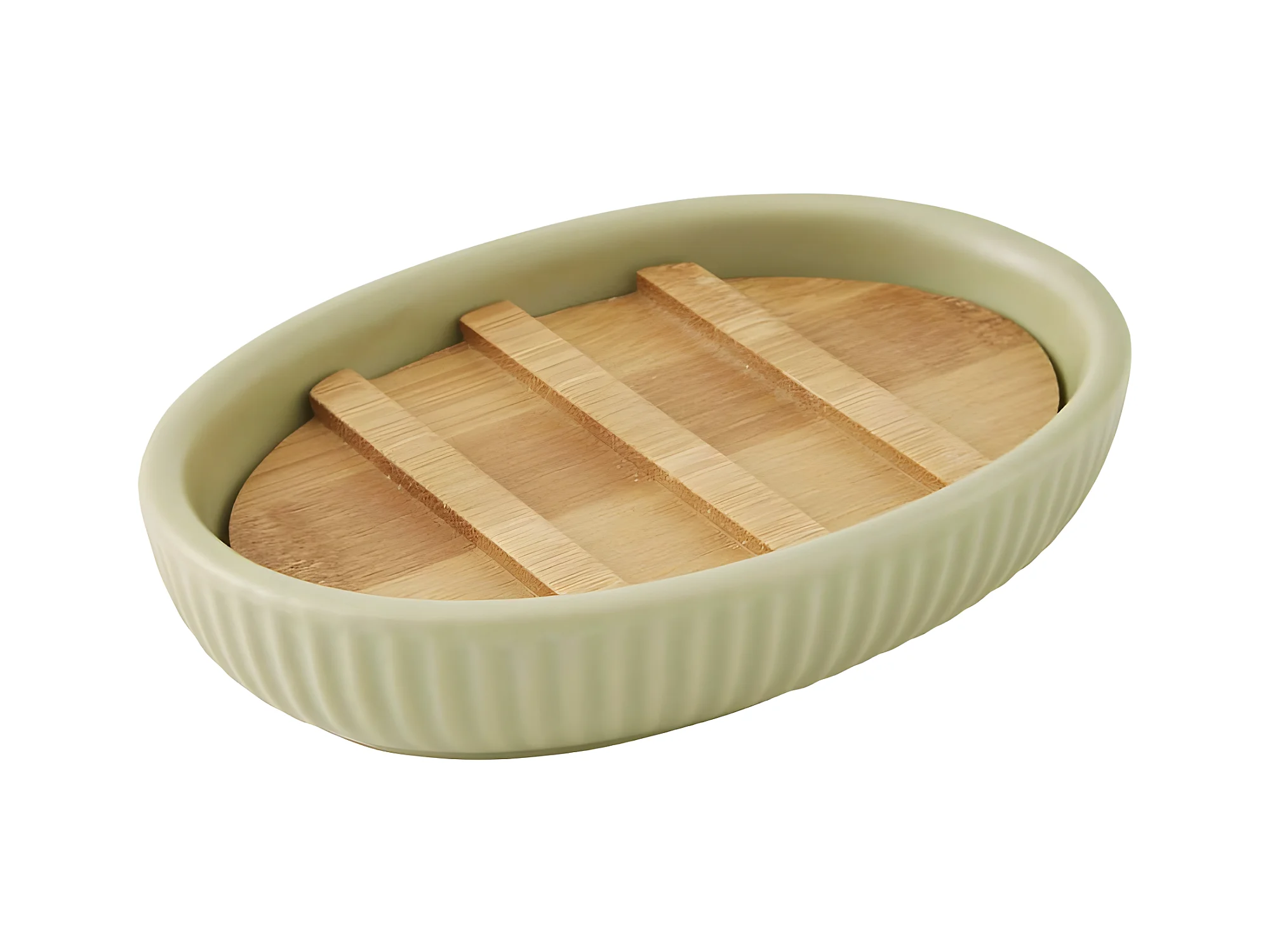 Set salle de bain strié 3 pièces céramique bambou tilleul
