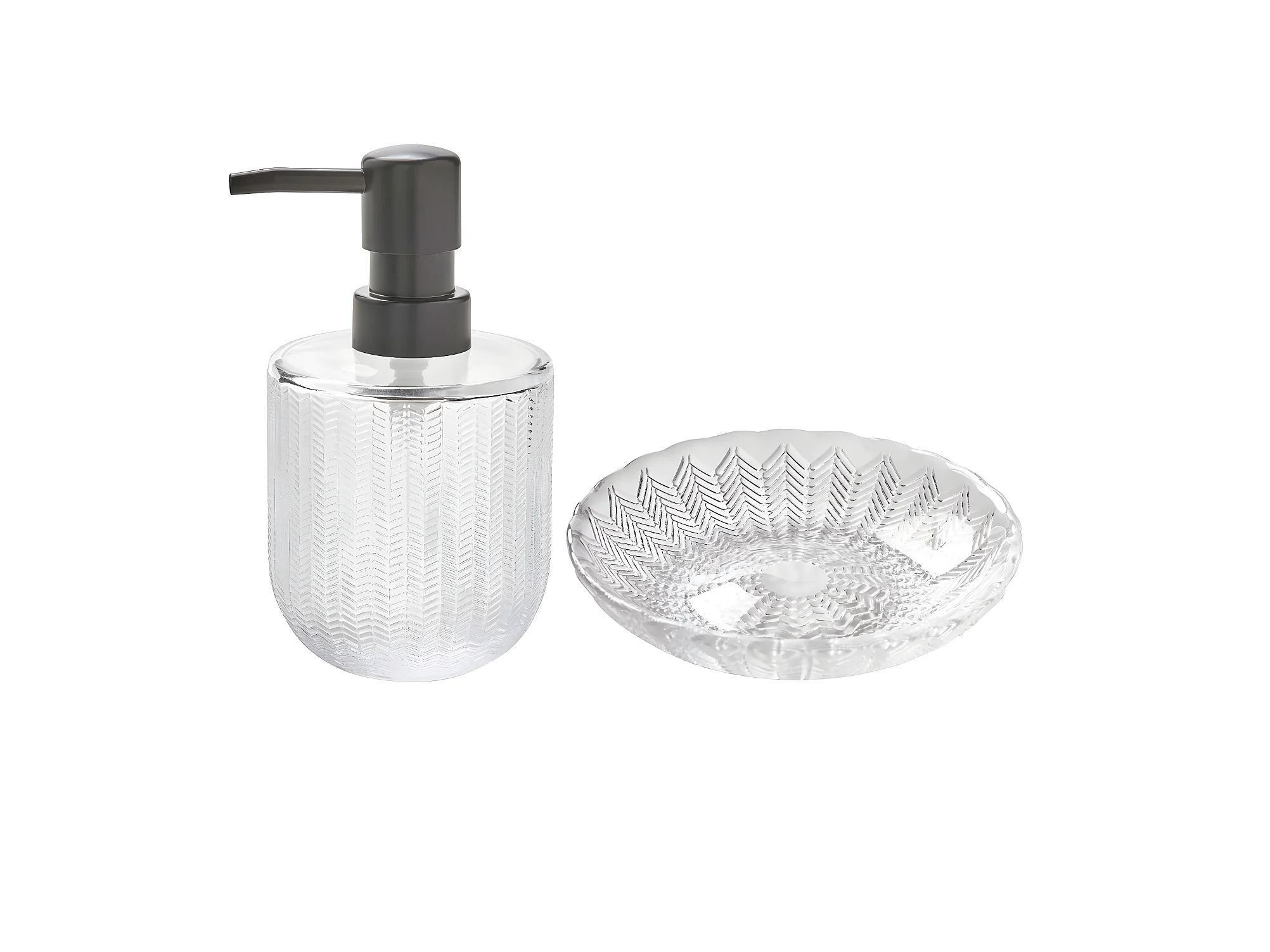 Set de salle de bain 9x9x14cm 2 pièces en verre transparent