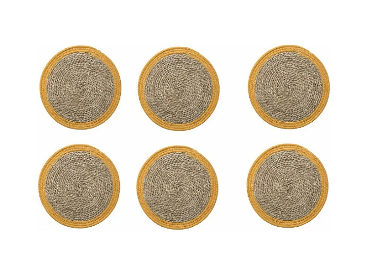 Now's Home - Lot De 6 Sets De Table D38cm En Jonc De Mer Naturel Et Safran Iris