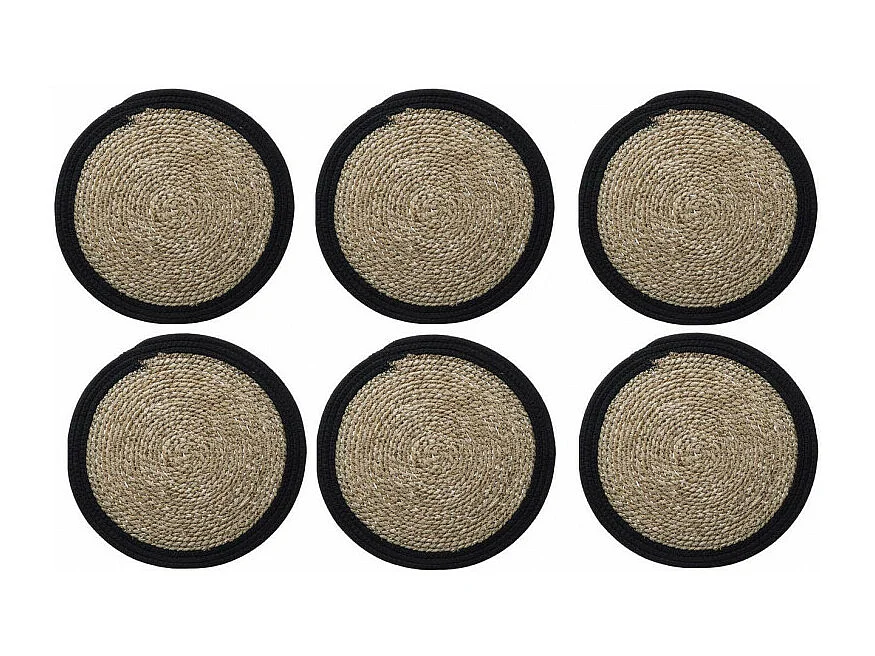Sets de table ronds en jonc naturel et jute teinté (Lot de 6)