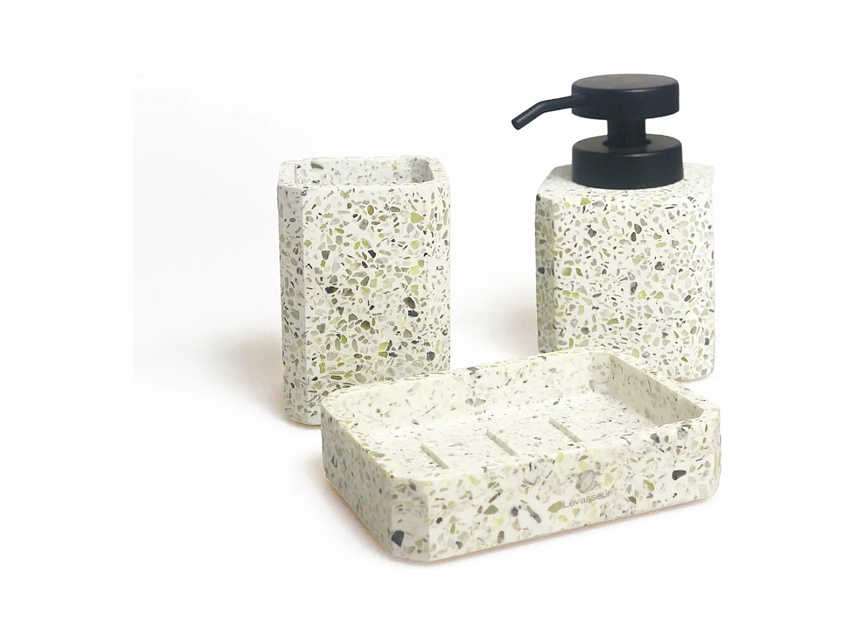 Set salle de bain terrazzo 3 pièces polyrésine vert