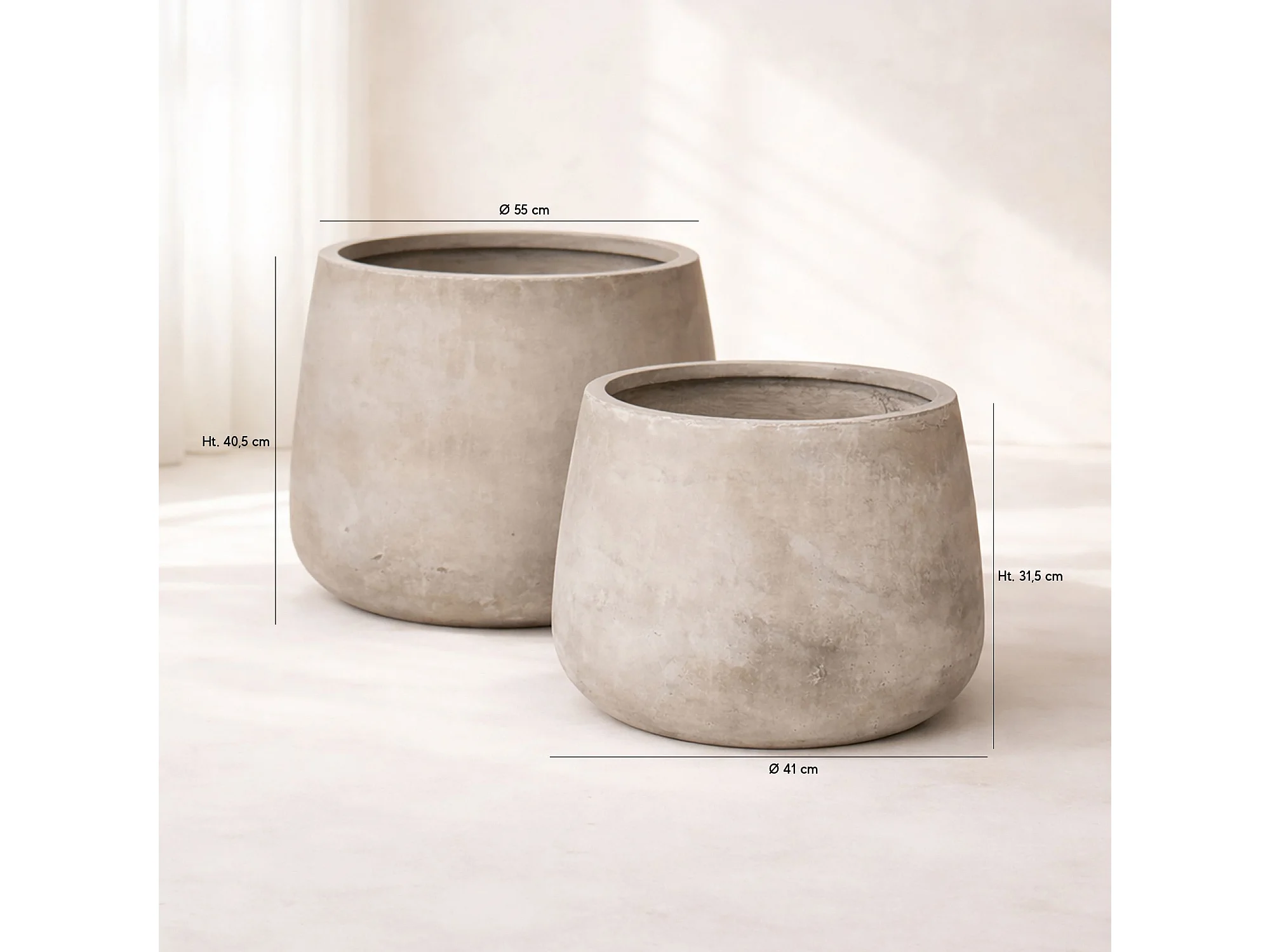 Now's Home - Set2 Pots Ronds En Fibre D'argile Forme Basse Hauteur 31 Et 40 Cm Faro