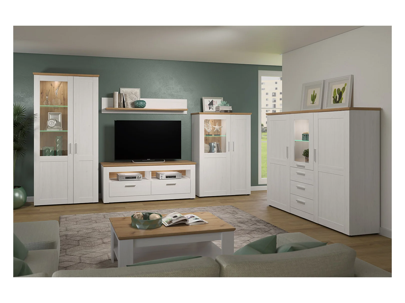 Marlon bibliothèque système blanc, chêne décor, brillant blanc.