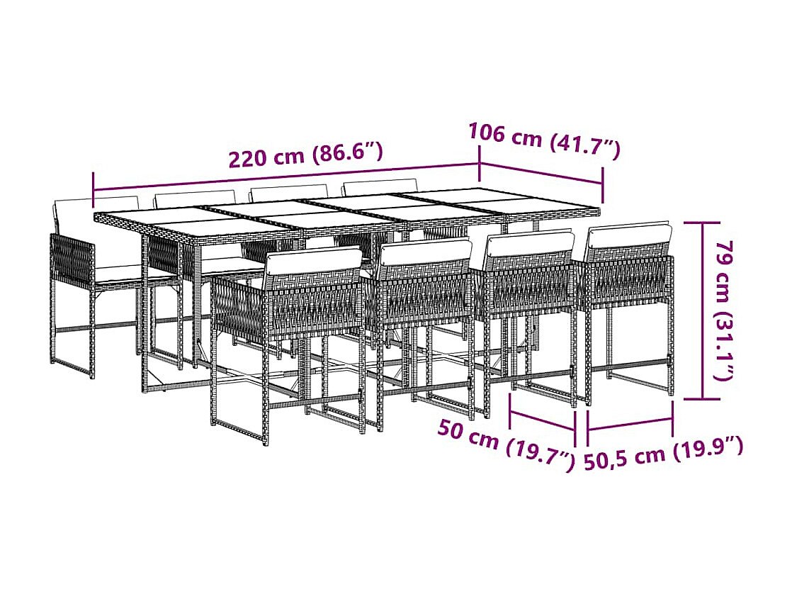 Sharif Ensemble à manger de jardin 9 pcs coussins gris résine tressée