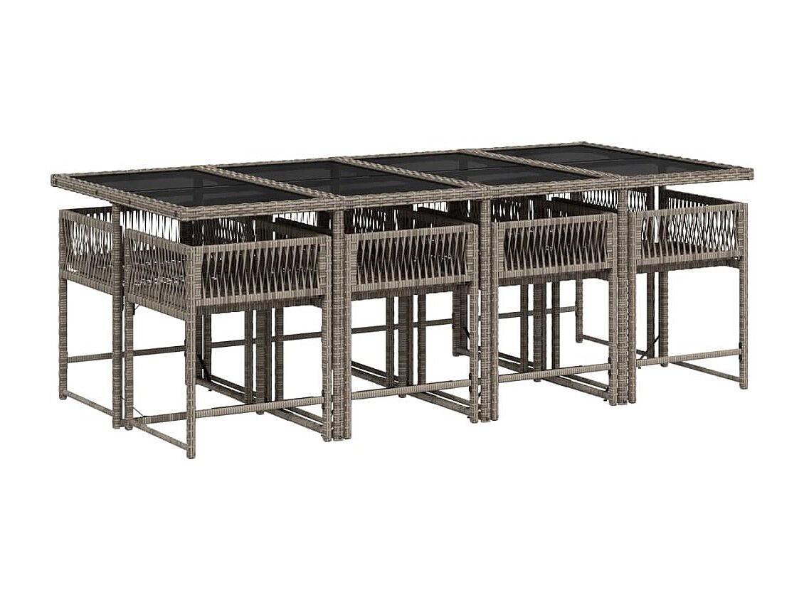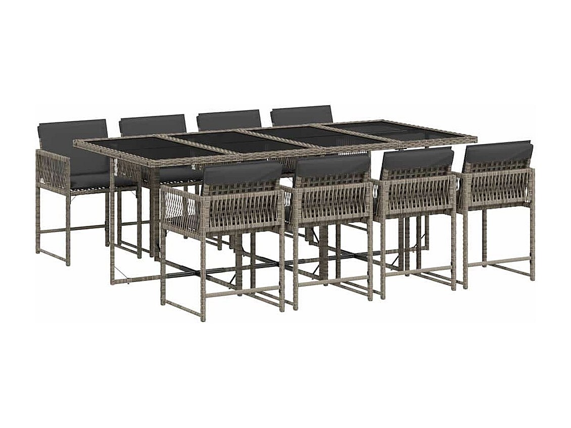 Sharif Ensemble à manger de jardin 9 pcs coussins gris résine tressée