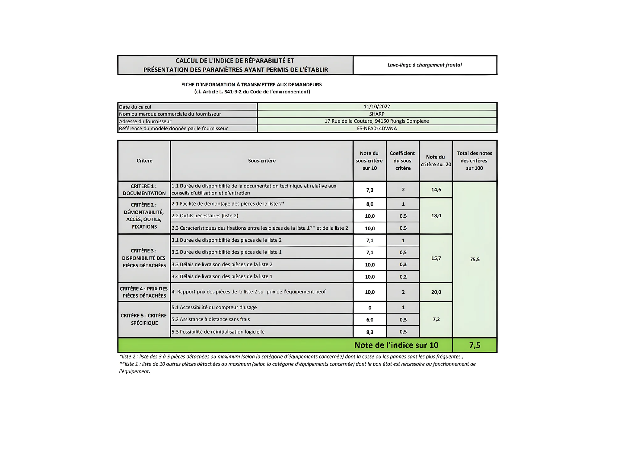 Sharp Lave-linge hublot 10kg 1400 tours/min - ESNFA014DWNA