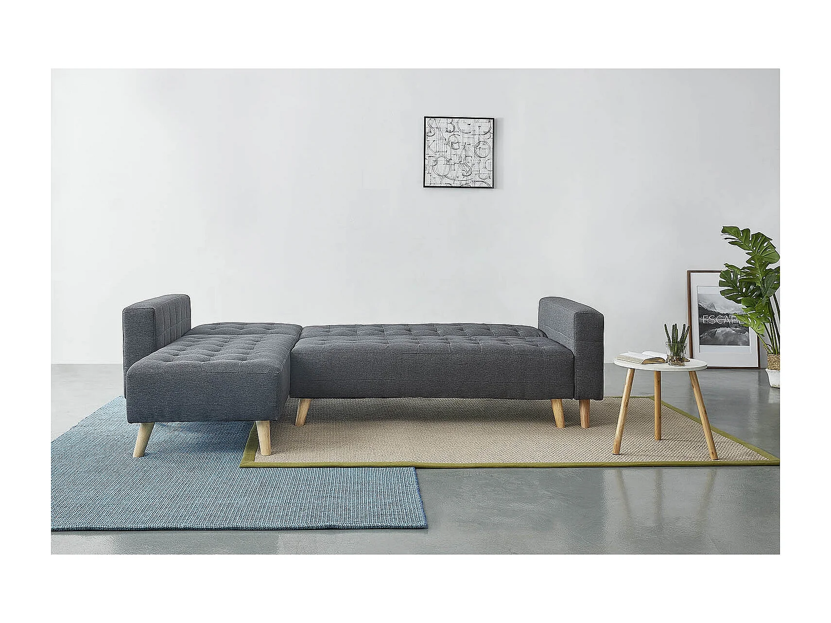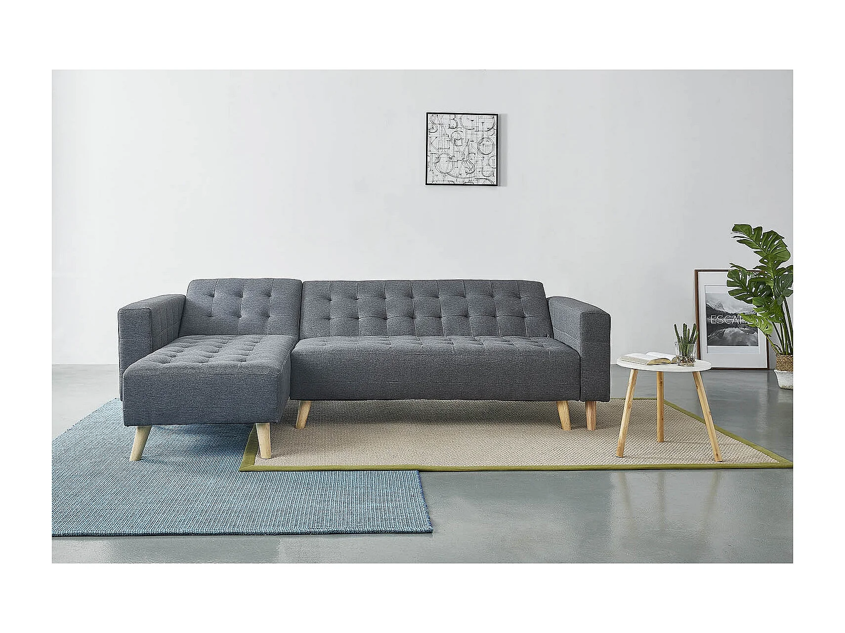 Canapé d'angle gauche convertible 4 places gris SHERBROOKE