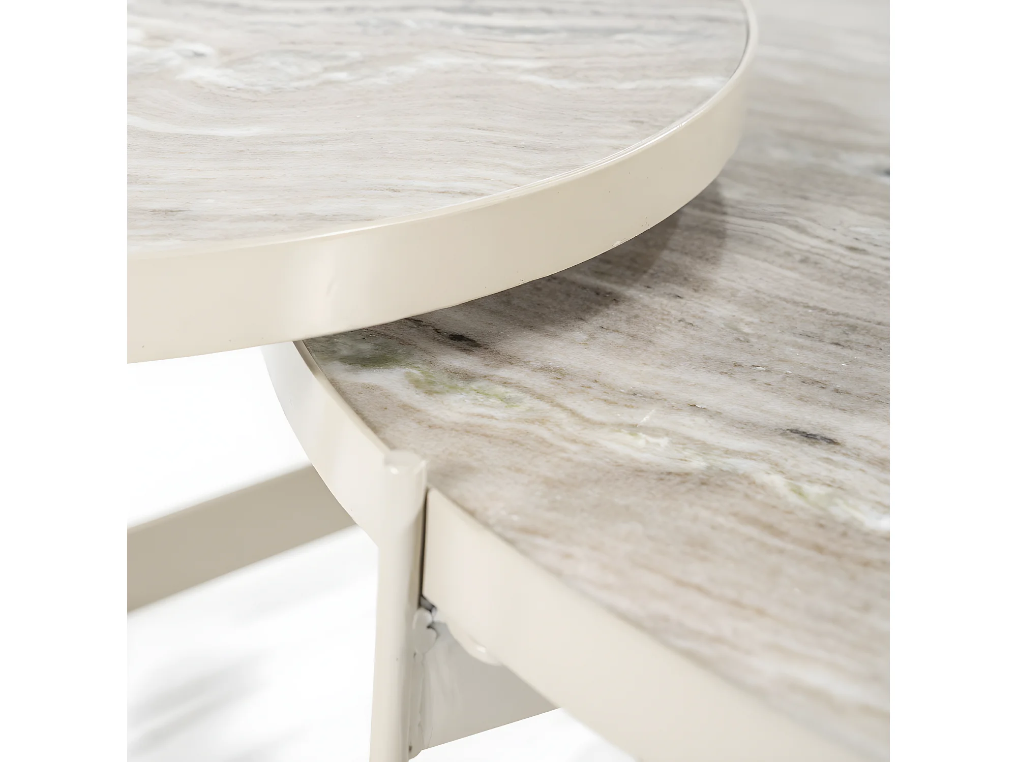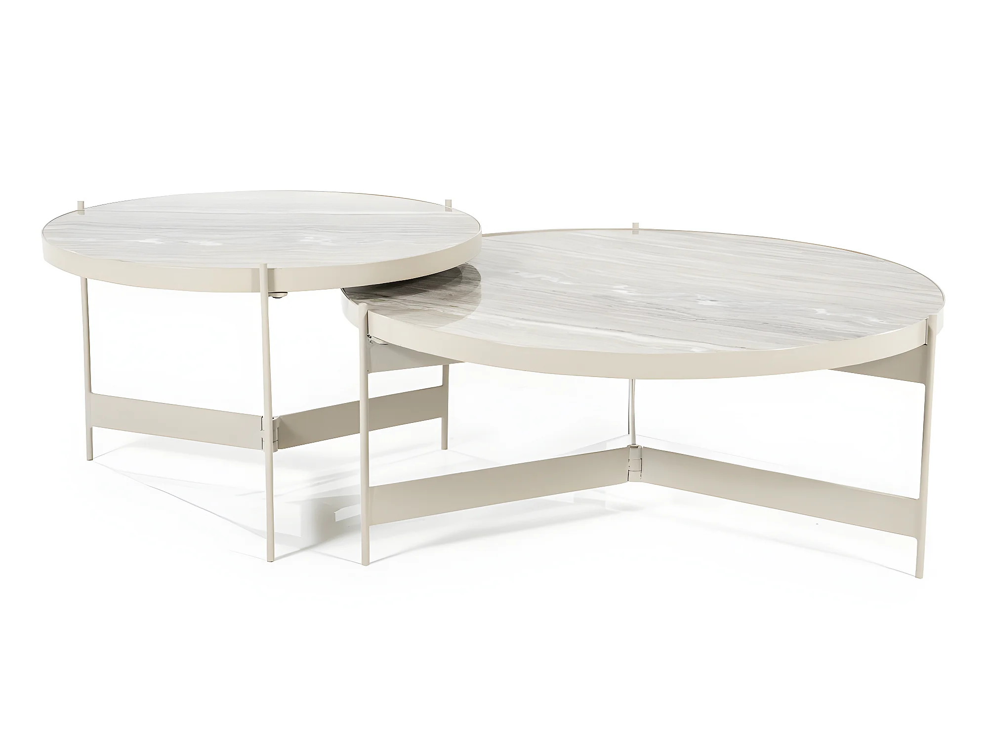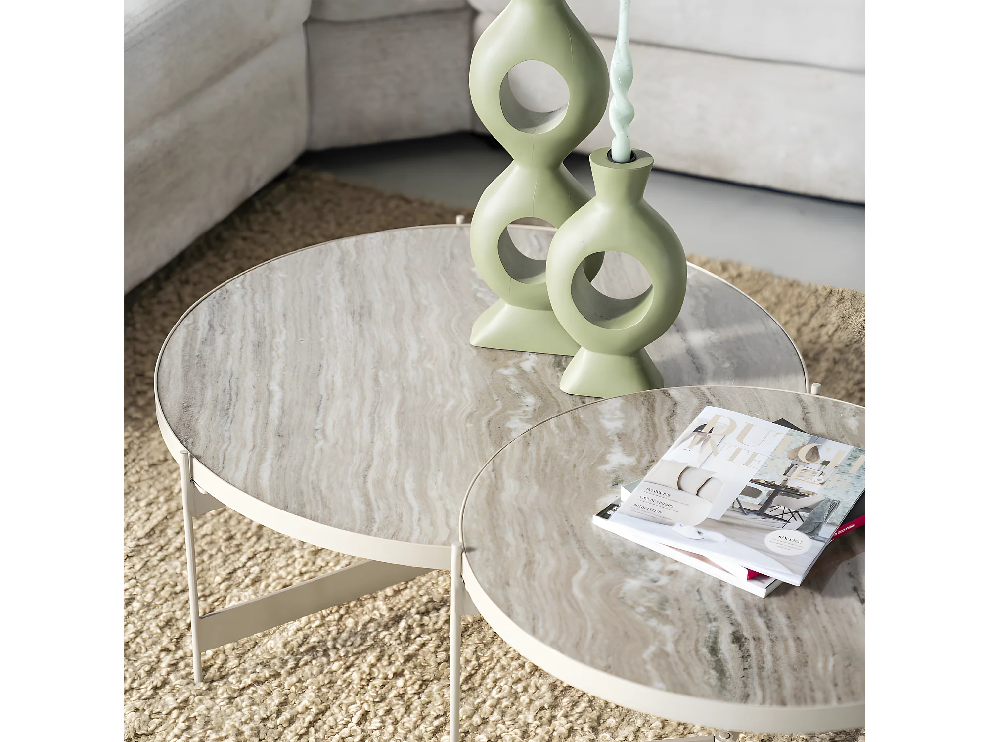 Sib - Lot de 2 tables basses rondes en marbre et métal - Ivoire