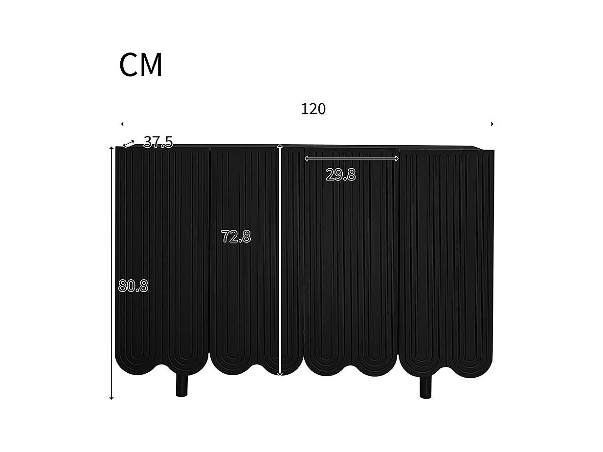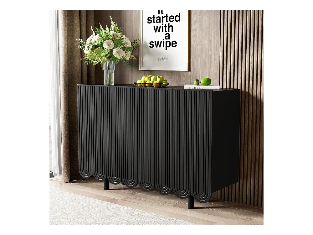 Sideboard Buffet en forme de goutte avec portes moulées et charnière tampon Noir