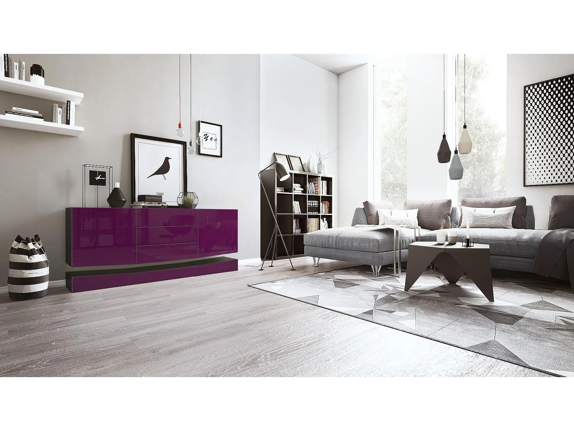 Sideboard City, noir mat/mûre haute brillance - Commode moderne pour votre salon (178 x 72 x 38 cm)