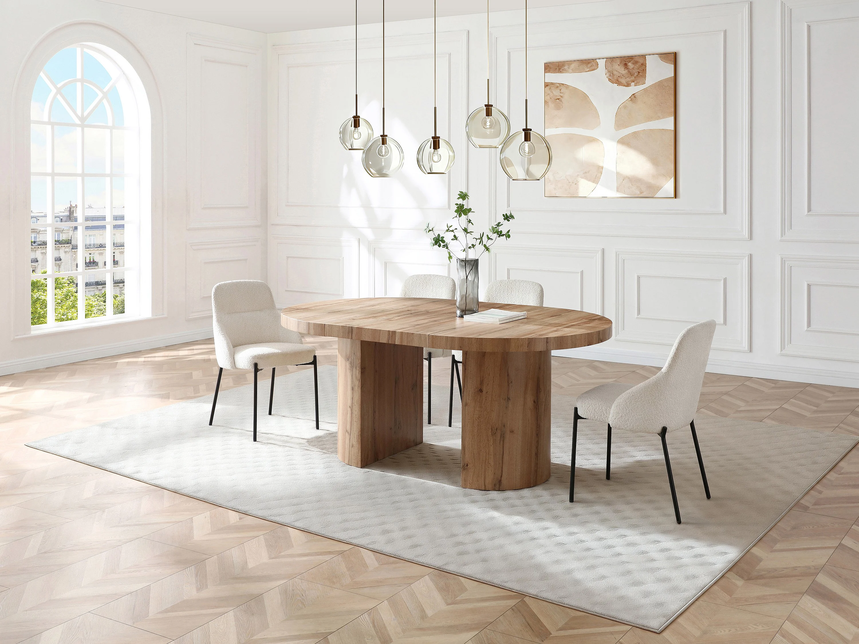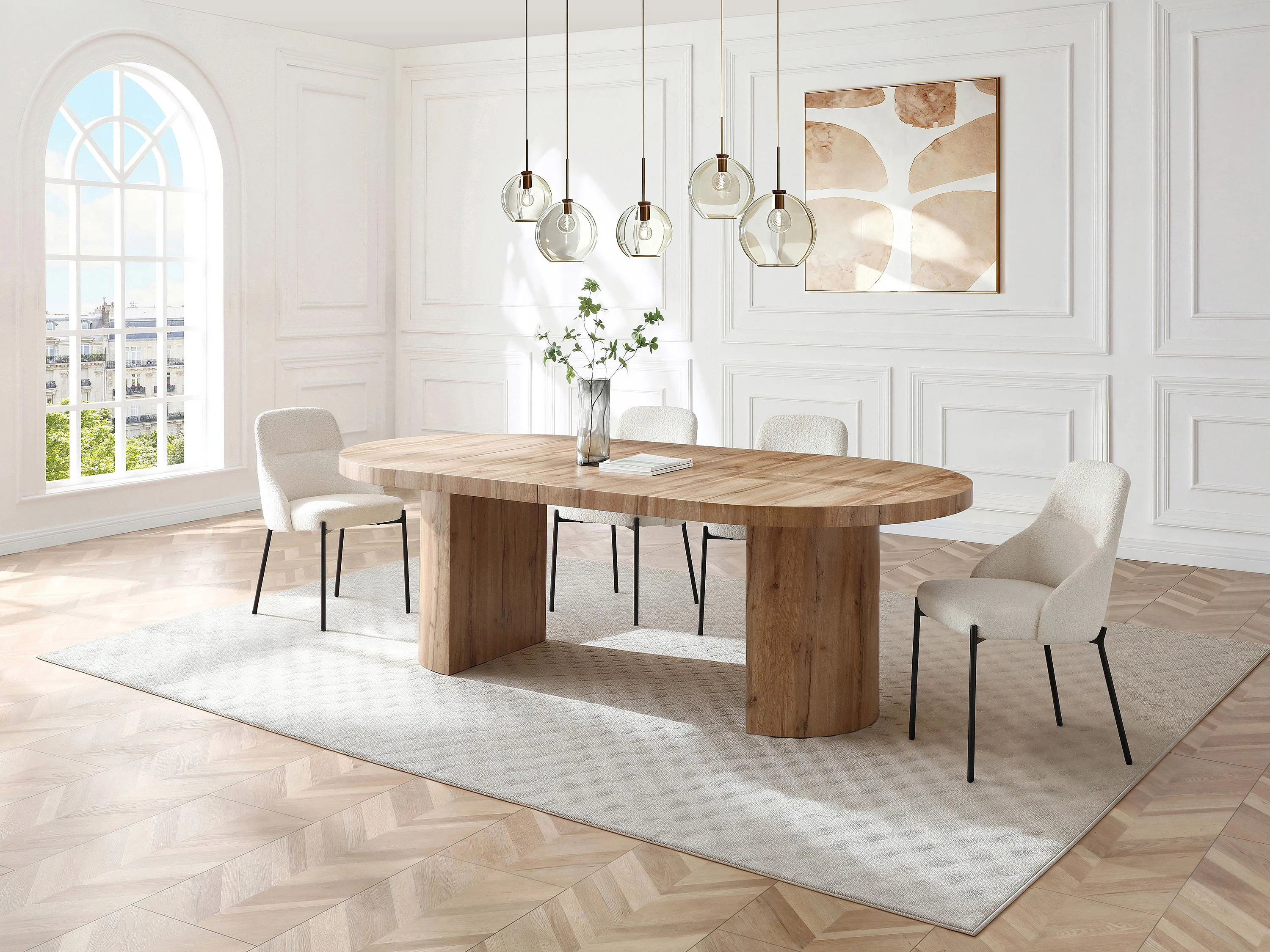 Table à manger extensible 4 à 12 personnes en MDF - Naturel clair - SIDRINA