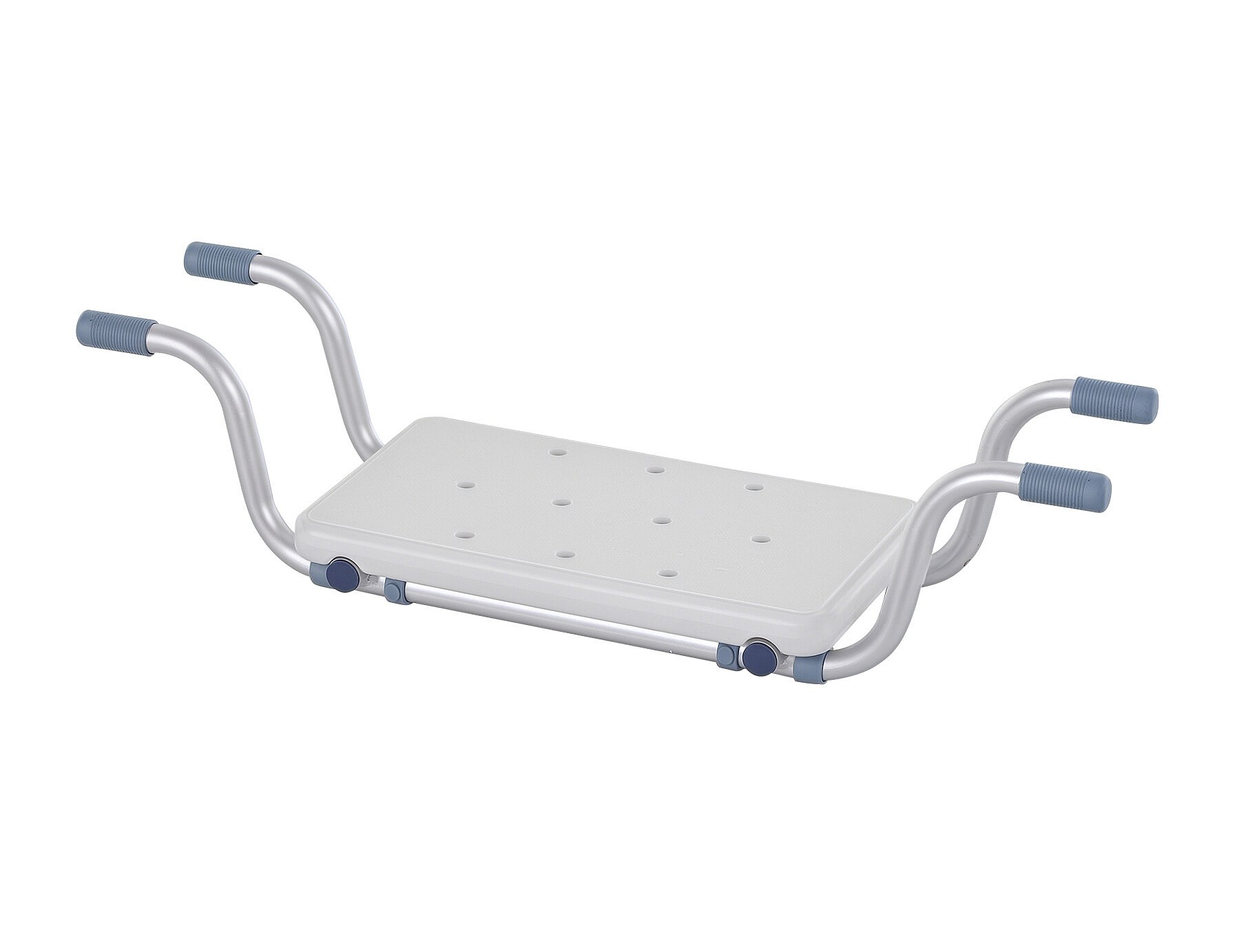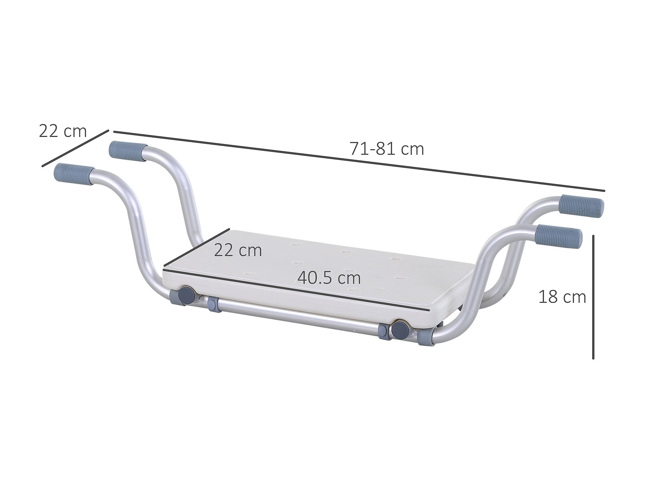 Siège de baignoire - siège de bain suspendu réglable - tabouret de salle de bain - dim. 71-81L x 22l x 18H cm - alu. HDPE blanc