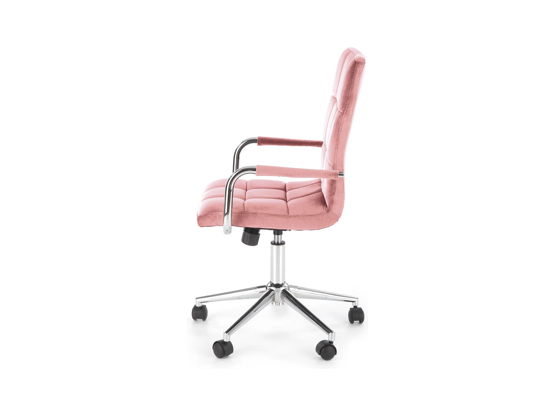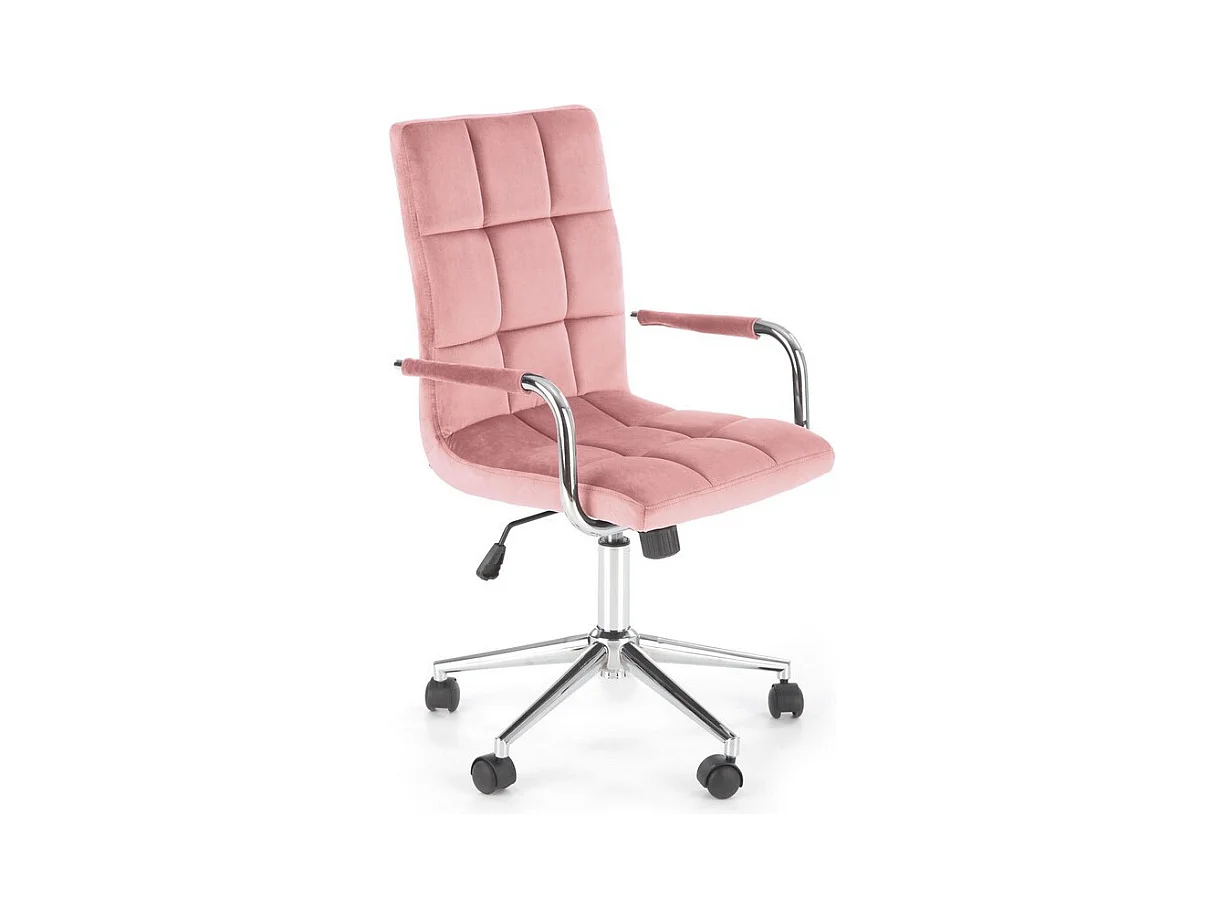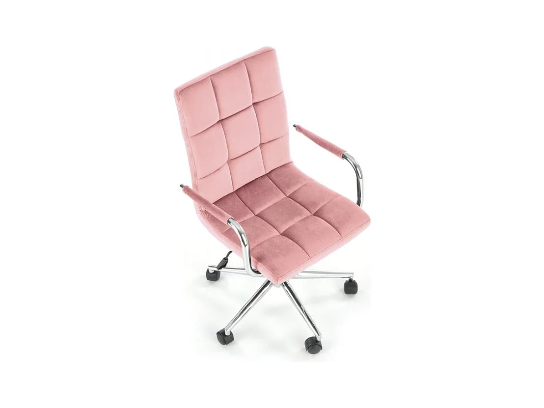 Siège de bureau enfant en velours rose avec structure en métal chromé MAC
