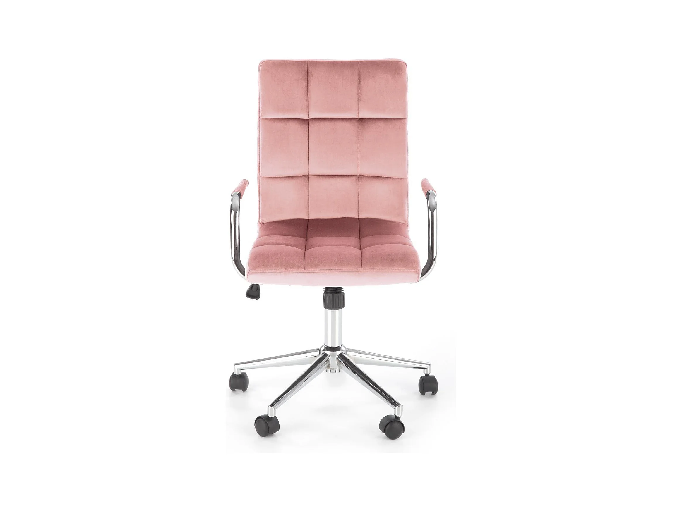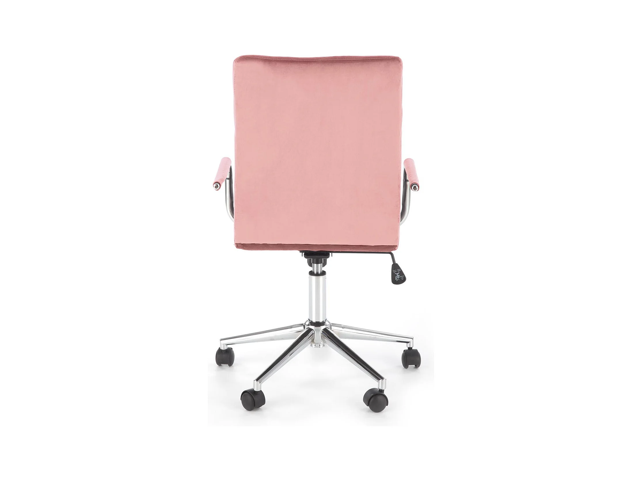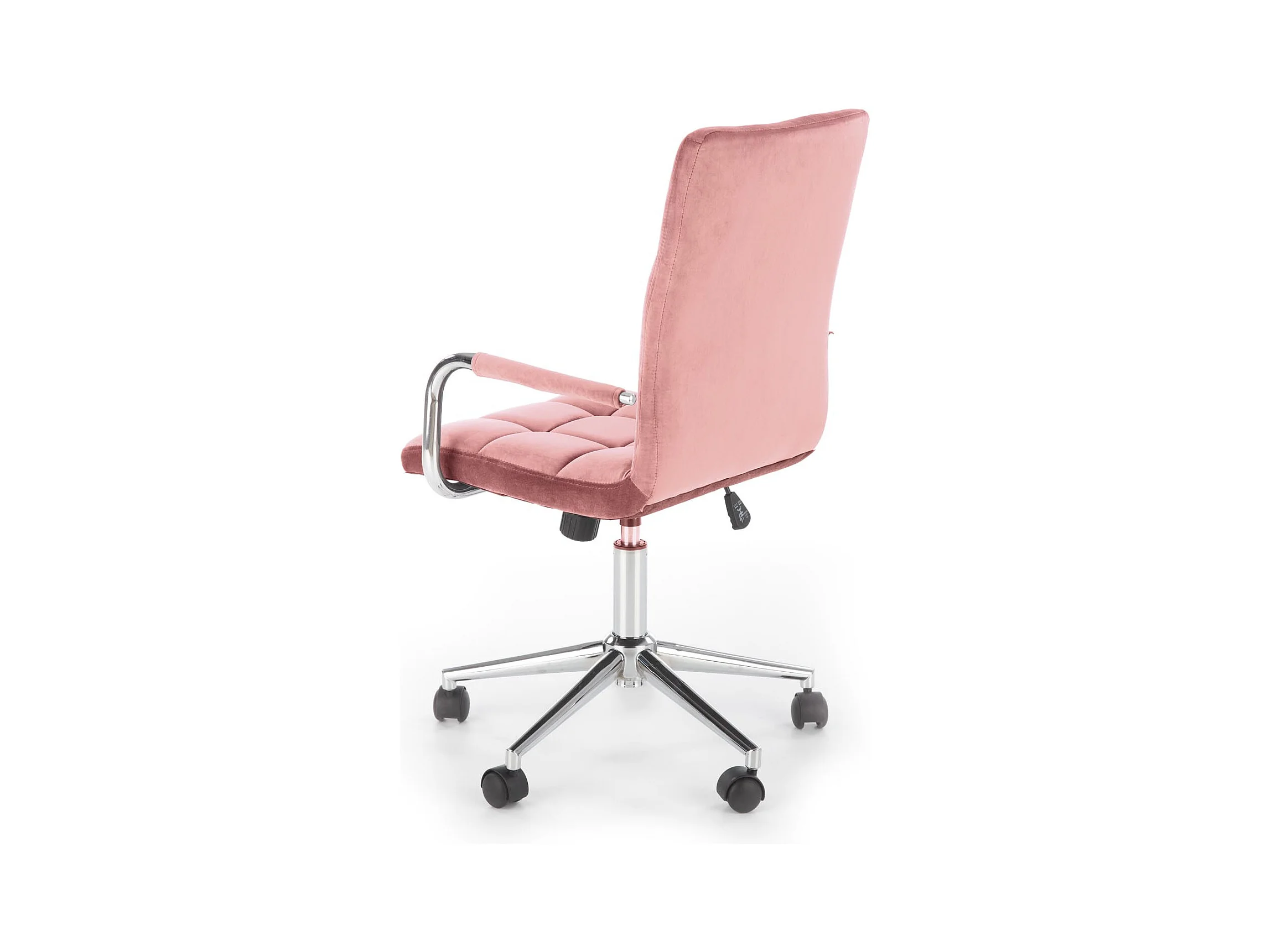 Siège de bureau enfant en velours rose avec structure en métal chromé MAC