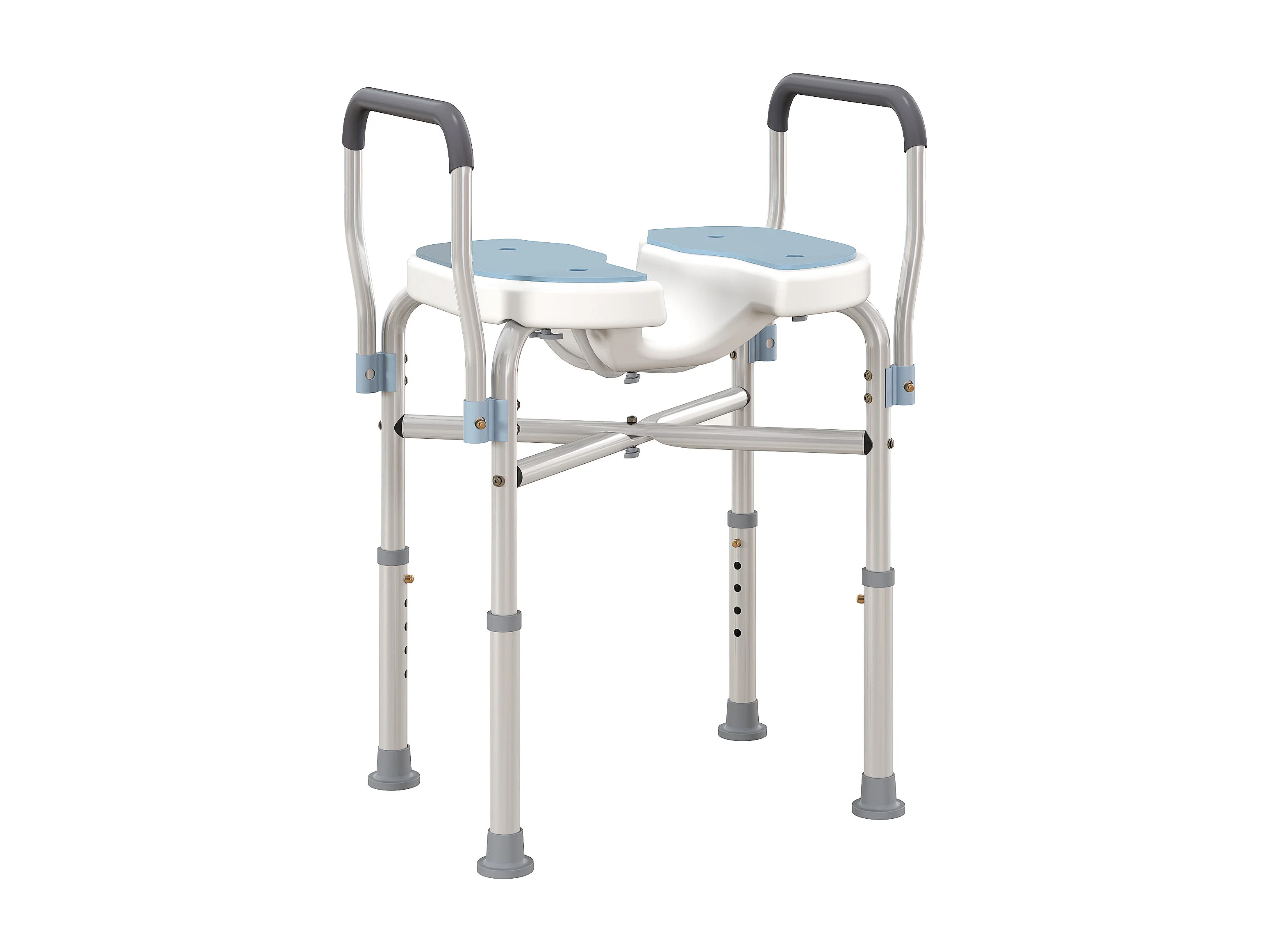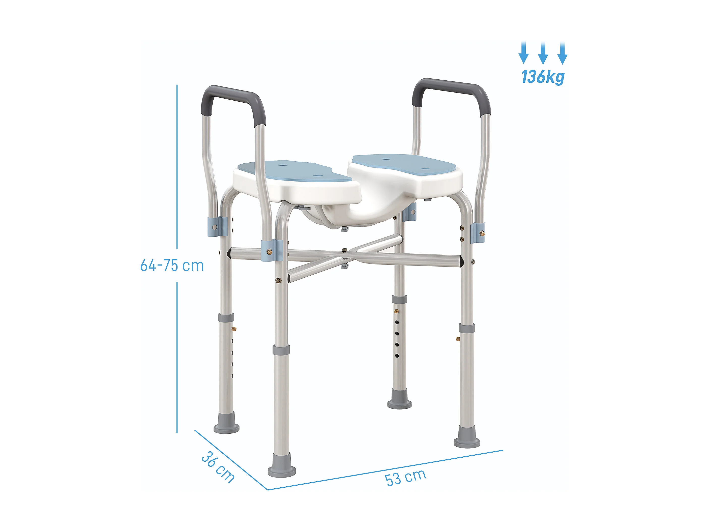 Siège de douche avec accoudoirs hauteur réglable antidérapant alu HDPE bleu balnc gris