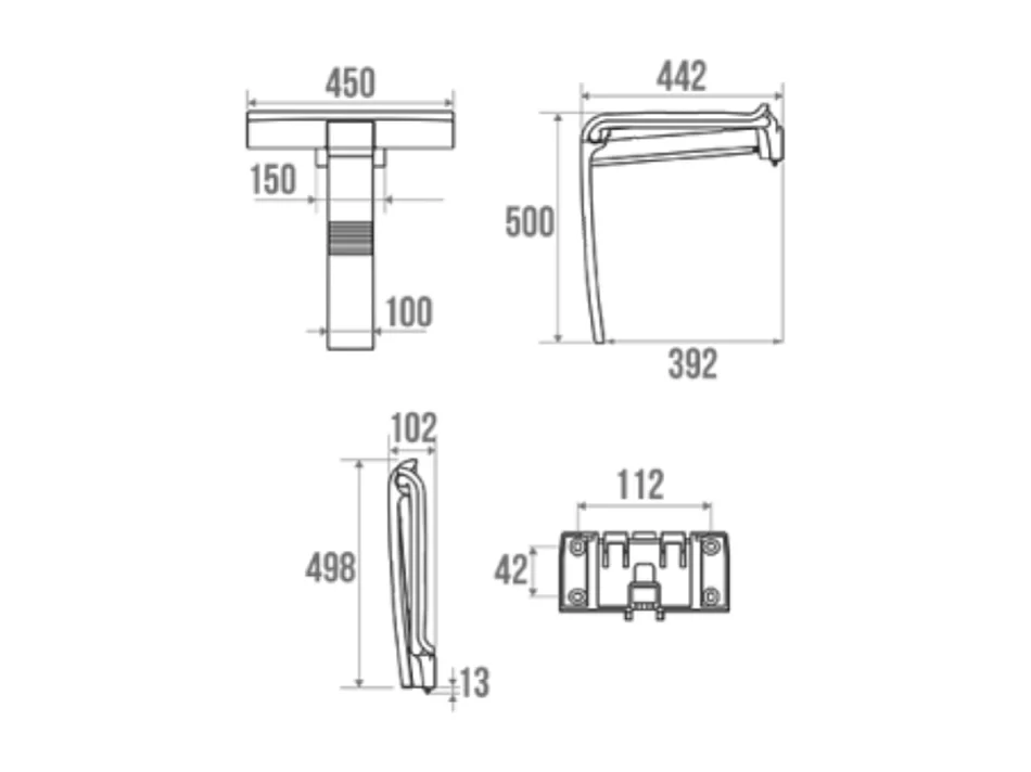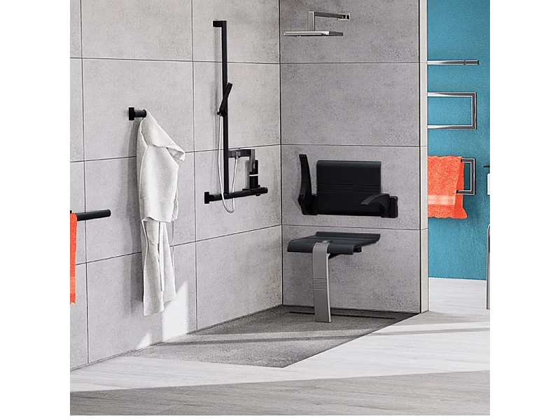 Siège de douche PMR PELLET Design escamotable gris anthracite piètement aluminium époxy gris