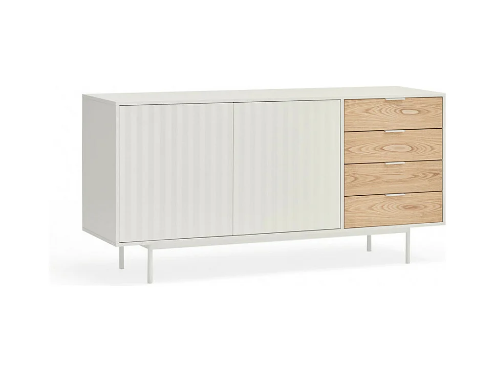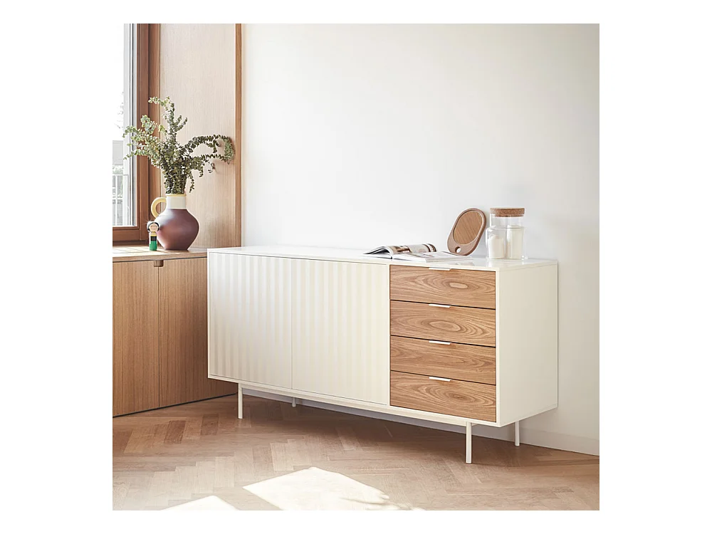 Sierra - Buffet en bois 2 portes 4 tiroirs L159,2cm : Couleur - Blanc