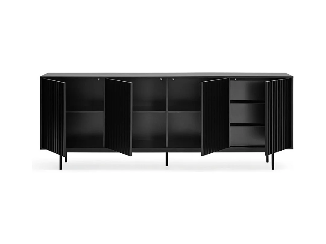 Sierra - Buffet en bois 4 portes 3 tiroirs L211cm : Couleur - Noir
