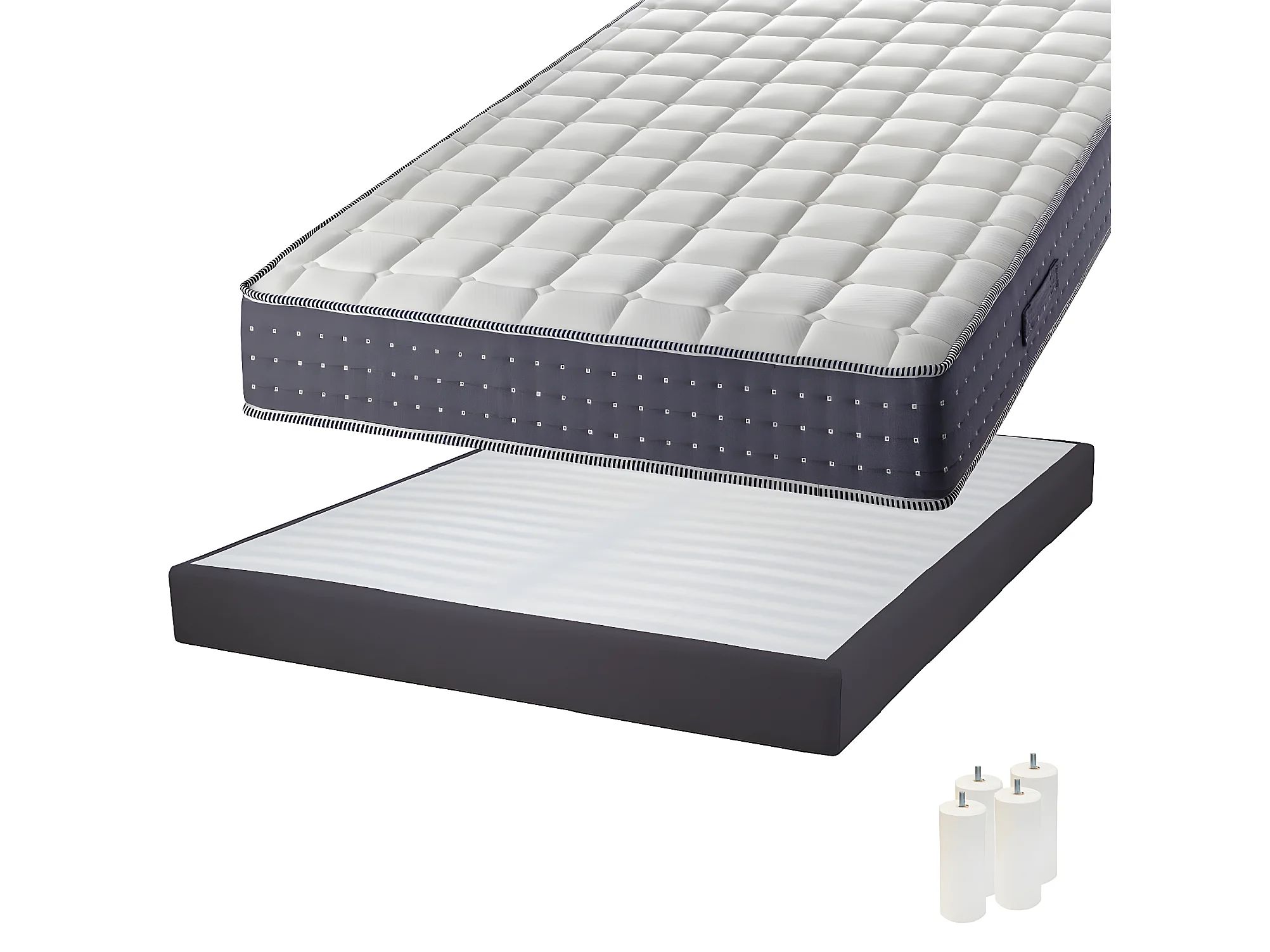 SILHOUETTE - Pack Matelas 140x190 + Sommier Tapissier Démontable 2x20 Lattes Anthracites + Pieds Blancs 15cm
