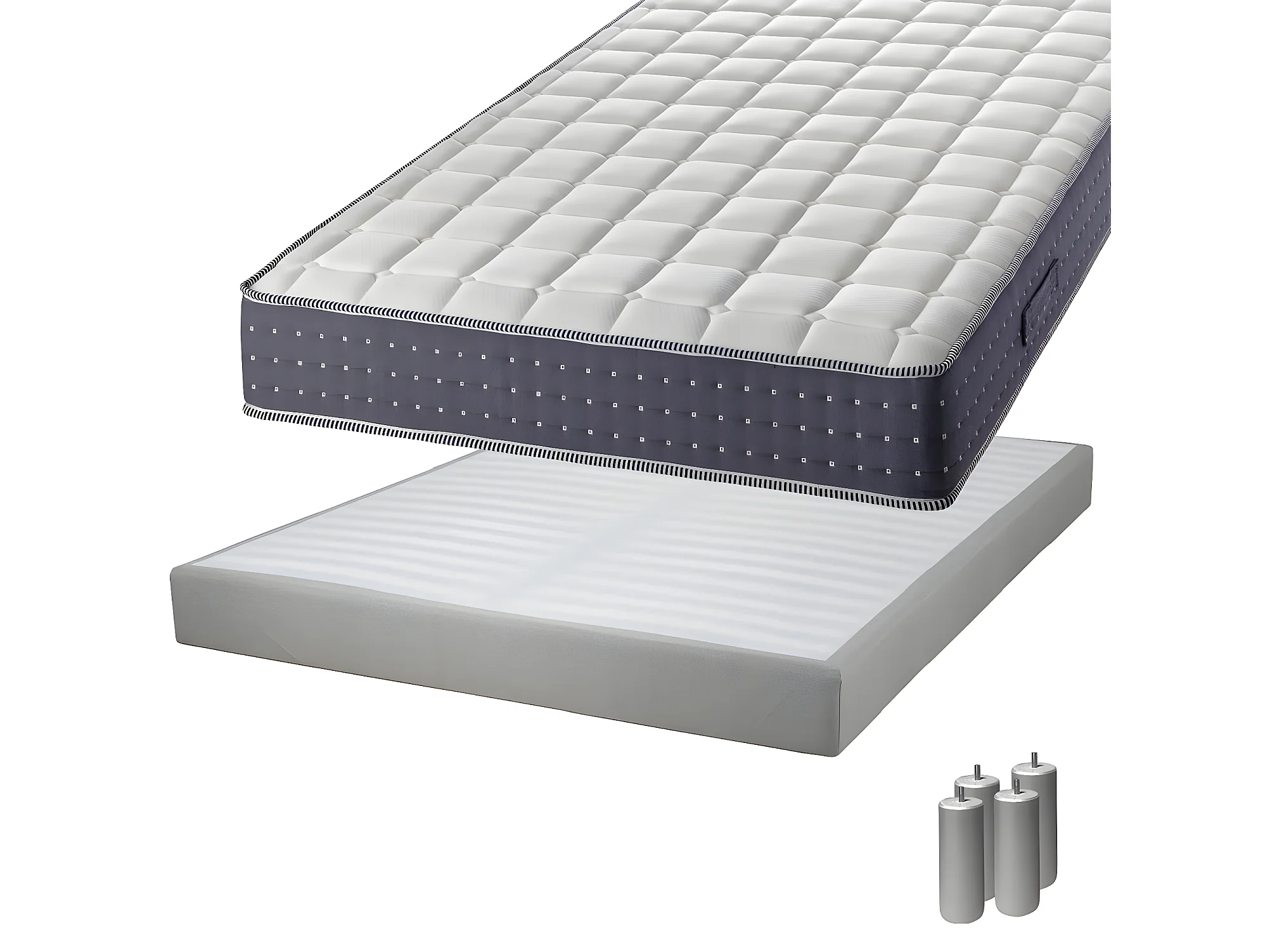 SILHOUETTE - Pack Matelas 140x190 + Sommier Tapissier Démontable 2x20 Lattes Lin + Pieds Argent 15cm