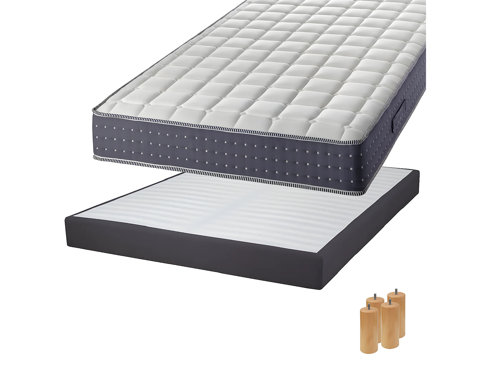 SILHOUETTE - Pack Matelas 160x200 + Sommier Tapissier Démontable 2x20 Lattes Anthracites + Pieds Bois 15cm