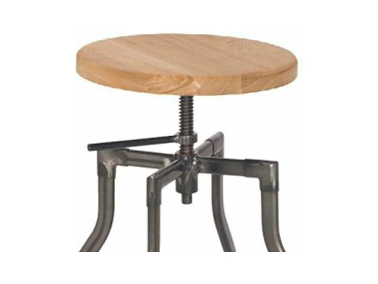 VARUS - Tabouret Réglable Vintage en Bois d'Orme et Métal