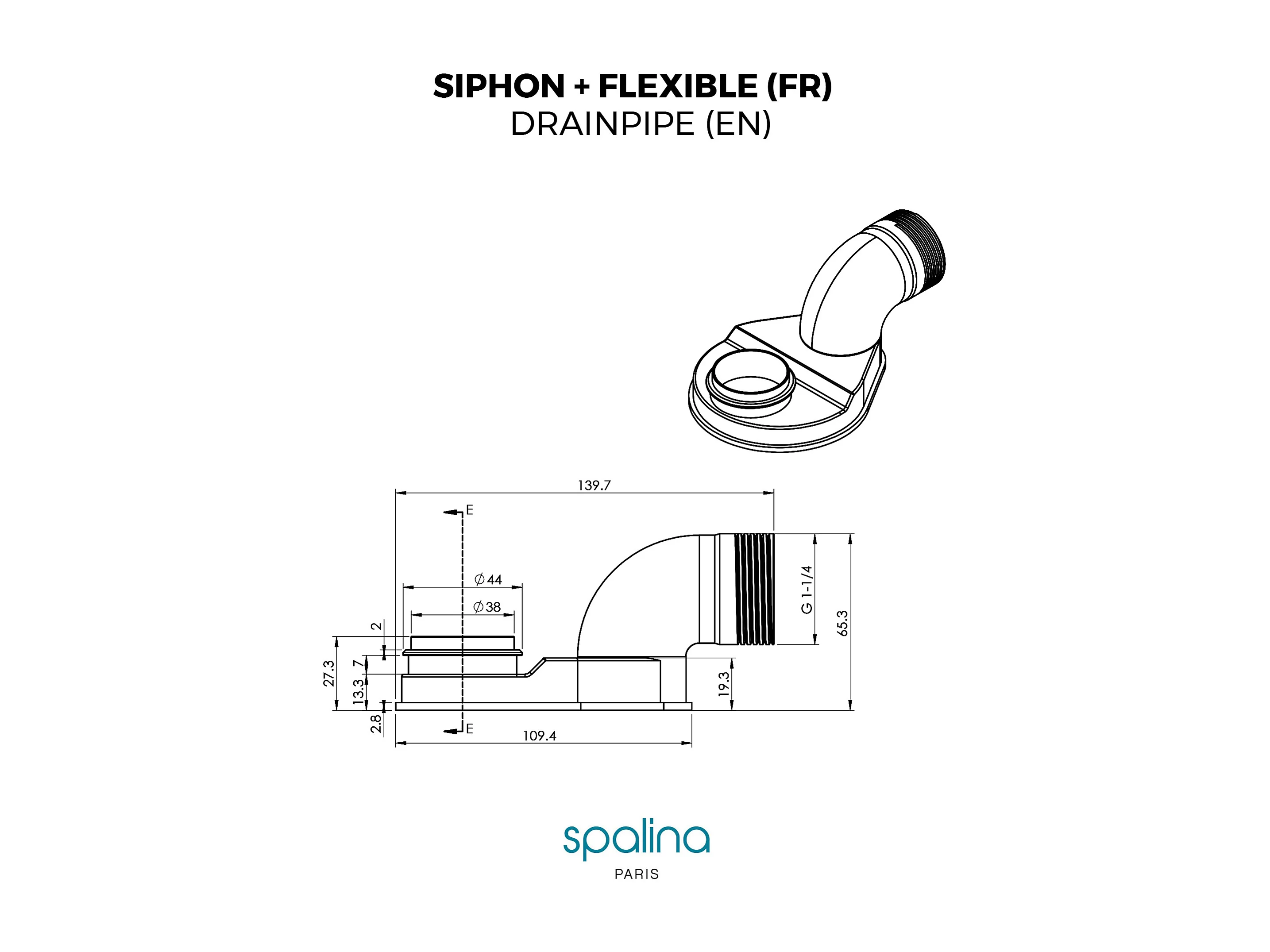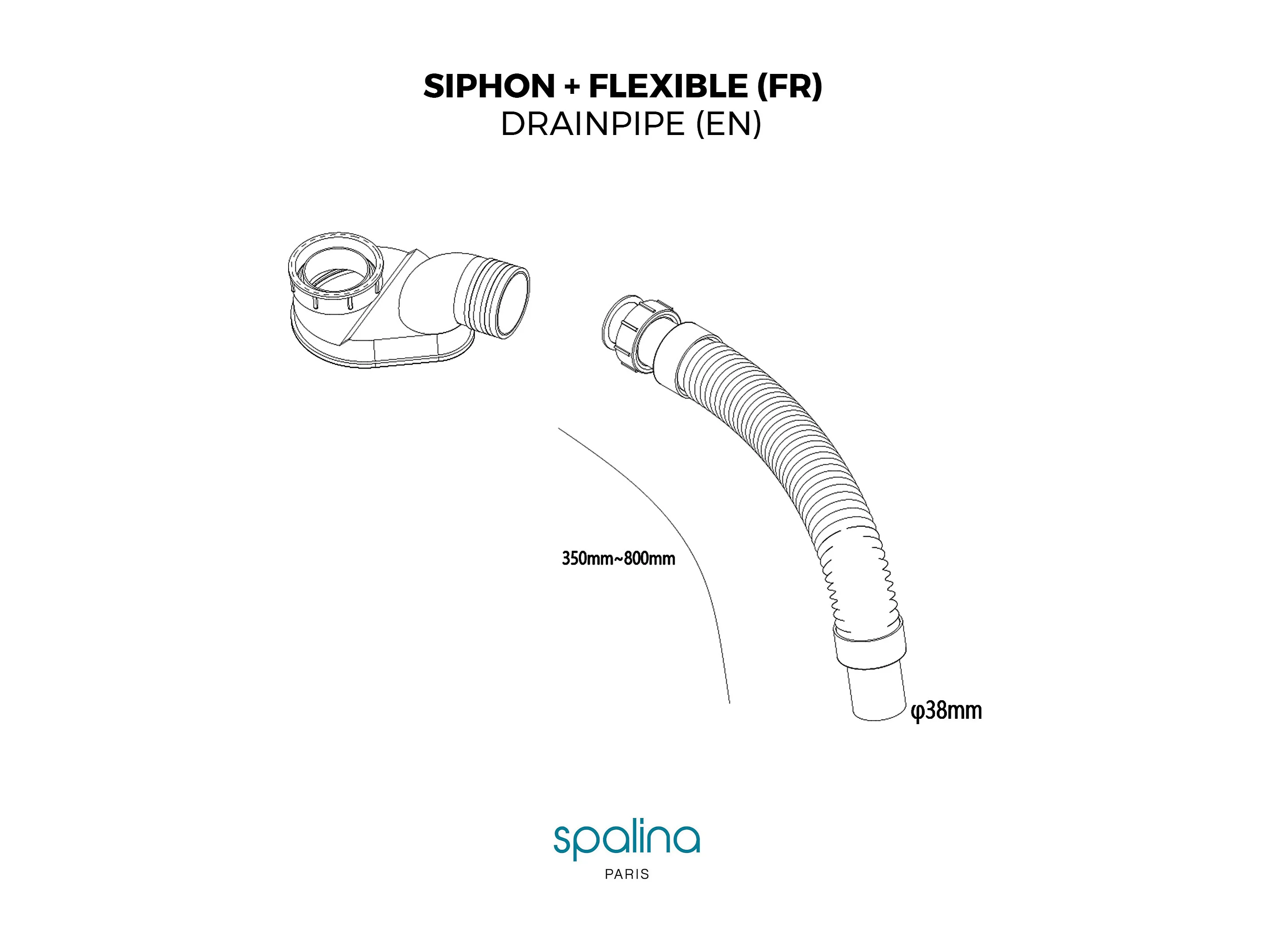 SIPHON EXTRA PLAT+FLEXIBLE - Compatible avec toutes les baignoires îlot SPALINA