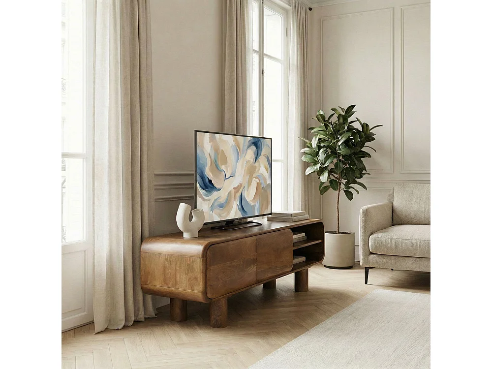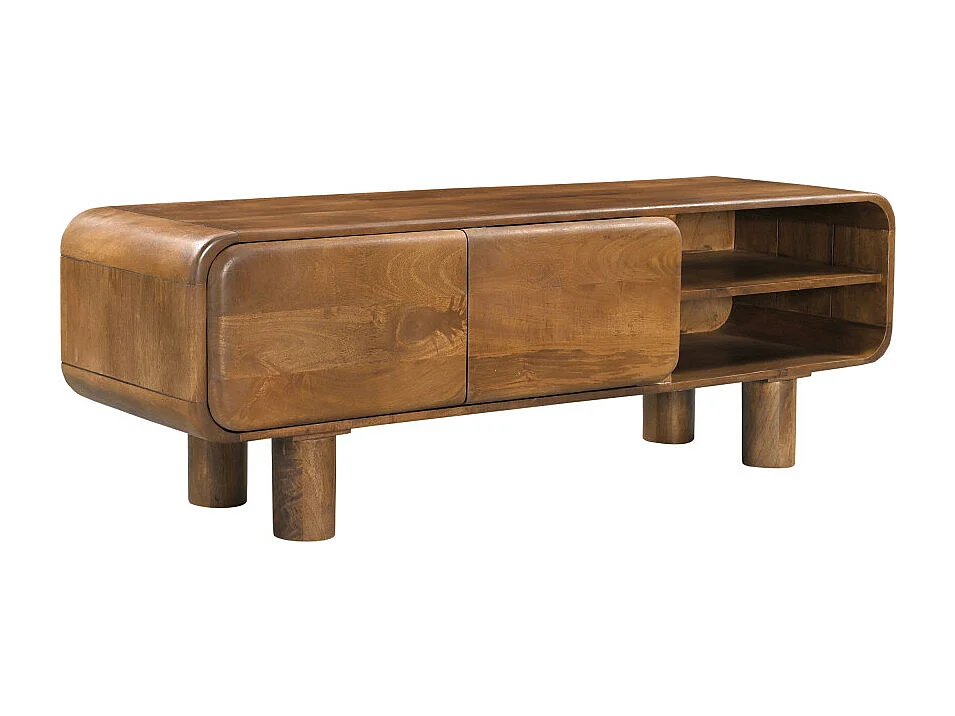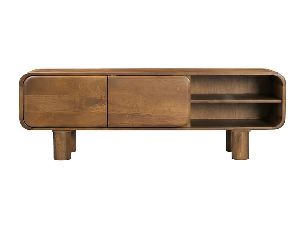 Sira - Meuble tv 2 portes en bois massif L140cm - Bois foncé