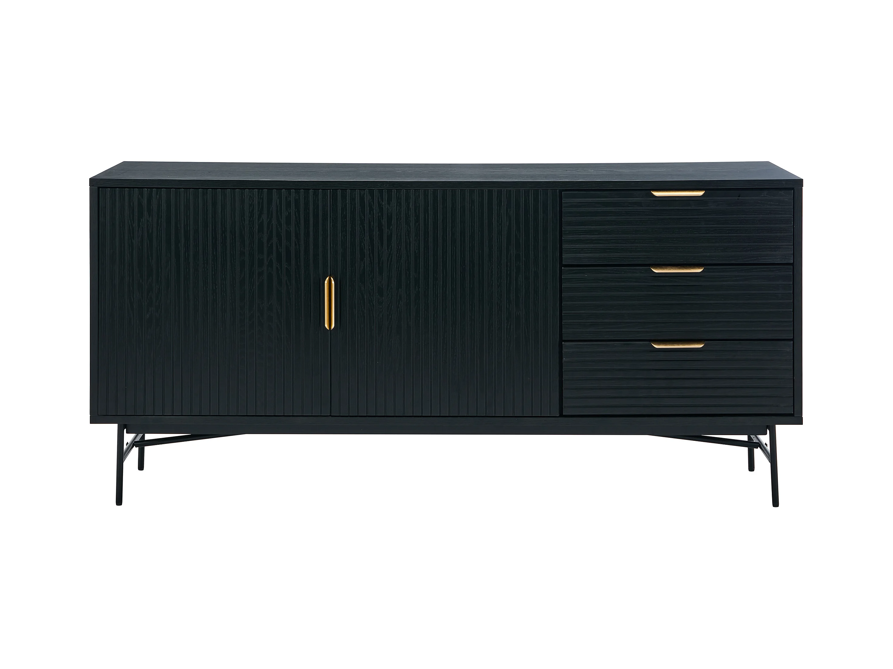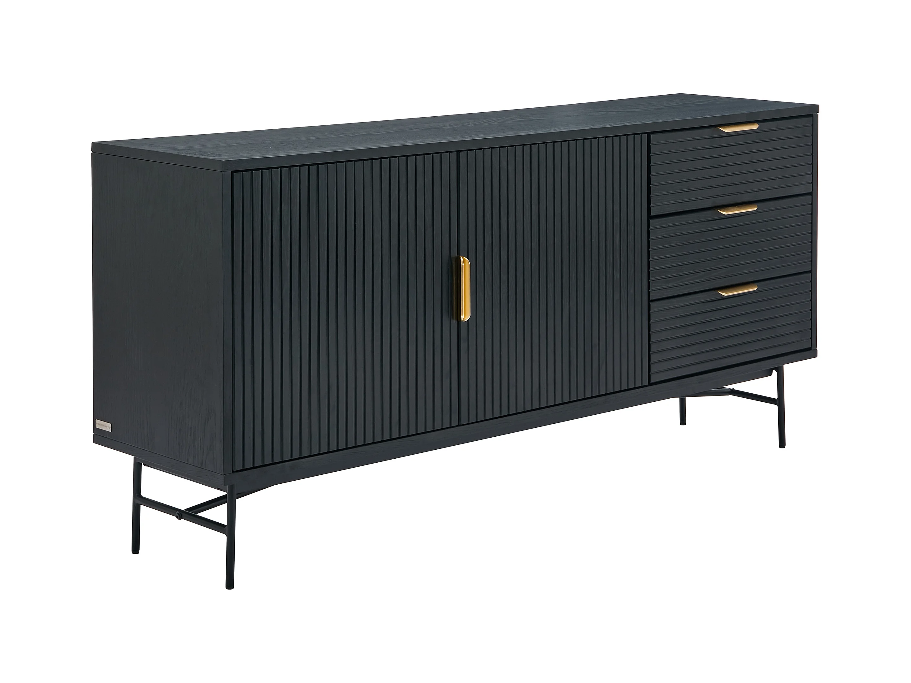 Buffet avec 2 portes et 3 tiroirs placage chêne et métal - Noir et Doré - SIRIOLA
